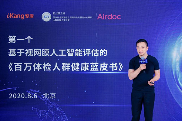 2020年8月6日,爱康集团联合国家科技信息资源综合利用与公共服务中心眼科大数据联合实验室以及Airdoc发布了第一个基于视网膜人工智能评估的《百万体检人群健康蓝皮书》。这也是自2019年以来,爱康再次携手合作伙伴,对中国体检人群眼底健康更进一步的科学性分析,此次蓝皮书发布也同步于人民网、新华网等多个直播平台在线发布,直播观看量超70万。