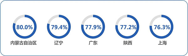 分析发现,全国各地区、各行业眼底状况普遍不佳。从地域分布来看,除河北、福建、四川、山西外,其余地区标化检出率均超过70%;内蒙古自治区、辽宁、广东、陕西、上海为眼底异常检出率最高的5个地区。