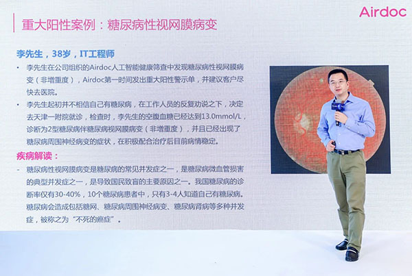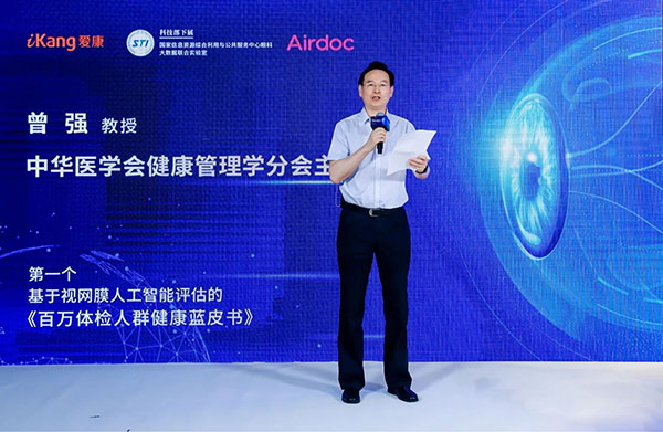 爱康集团创始人、董事长兼CEO张黎刚在发布会现场全面解读了第一个基于视网膜人工智能评估的《百万体检人群健康蓝皮书》。