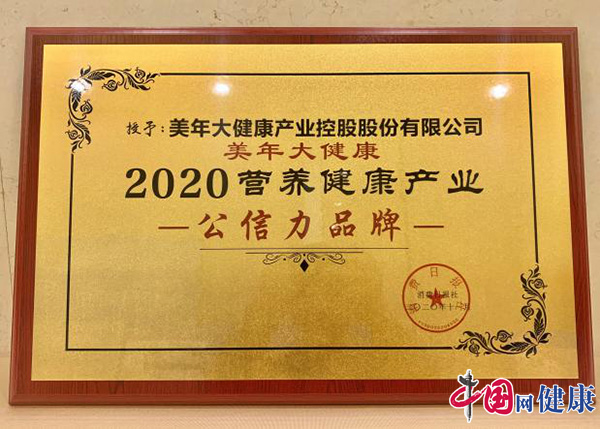 会上,美年大健康集团凭借在大健康产业的品牌公信力以及社会责任担当,荣获了“2020营养健康产业公信力品牌”。