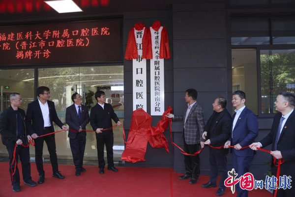 福建医科大学党委副书记王诗忠,福建医科大学附属口腔医院、口腔医学院党委书记陈江,福建医科大学附属口腔医院、口腔医学院院长卢友光,晋江市人民政府市长张文贤、副市长黄少伟等为福建医科大学附属口腔医院闽南分院(晋江市口腔医院)揭牌。