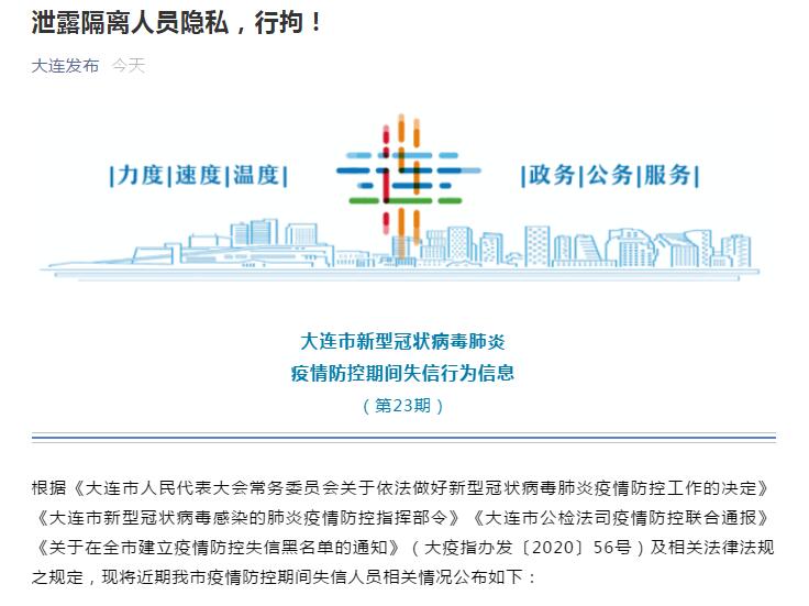 大连一居民泄露62名疫情期间居家隔离人员隐私信息被行拘