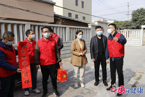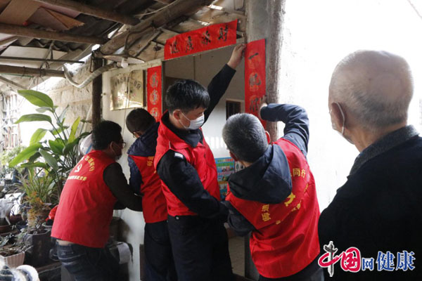 志愿者们为慰问对象贴春联送祝福