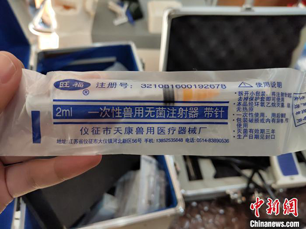 执法人员在一美容店发现的一次性兽用注射器。 王鹏摄
