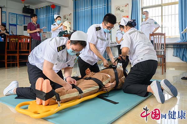 考核现场,医护人员顺利完成了成人气管插管、成人基础生命支持、止血与包扎术、颈椎损伤固定与搬运四项急救技能的考核,娴熟的操作和默契的配合得到了评审专家的一致好评。