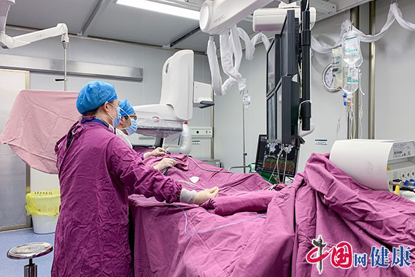 手术过程中,医生将特制的记忆合金材质的封堵器通过股静脉送到左心耳的位置,将左心耳完全封闭,避免血栓脱落至血管。