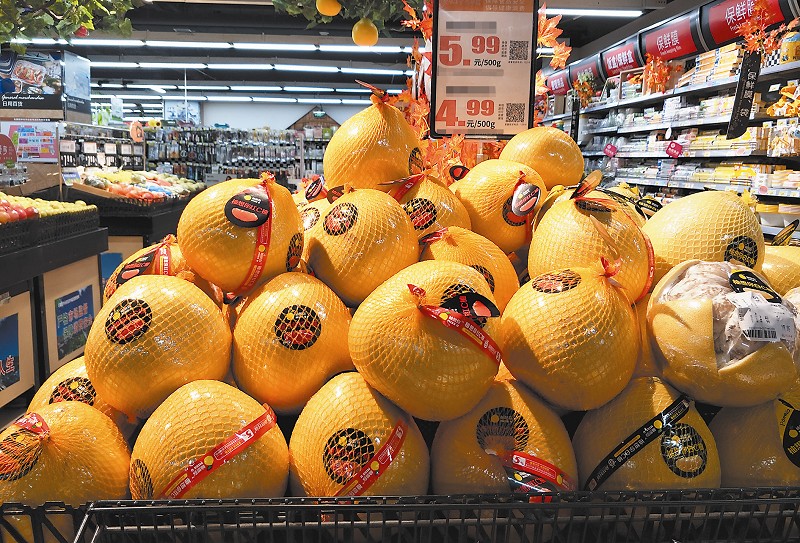 柚子个头往往比较大,如果皮已经剥开,最好装在保鲜袋中密封袋口放入冰箱,可以有效锁住水分。也可以把柚子放回皮中盖好,就算不放进冰箱里也可以保存3天左右。(李建)