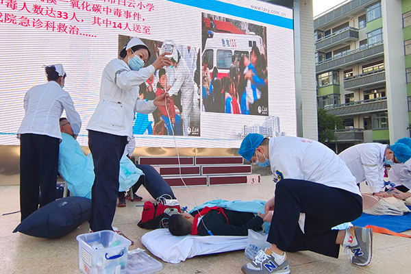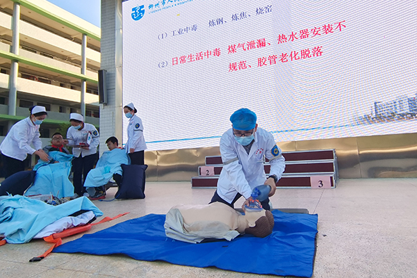 伴随着医务人员深入简出的讲解,师生们积极互动,在演练中加深了对一氧化碳中毒救治知识的理解。