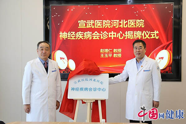 河北医大一院党委书记、院长赵增仁与首都医科大学宣武医院神经内科首席专家、宣武医院河北医院院长王玉平在仪式上进行了揭牌。