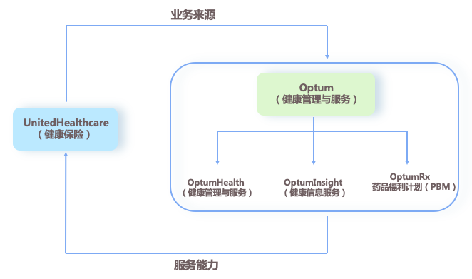 作为全球领先的健康与福利管理公司,联合健康打造以健康保险(支付体系)为中心的United Healthcare平台和以健康服务为核心的Optum平台(供应体系),将“医+药+险+数字化”四项能力结合,打通医疗服务体系中最重要的支付方与医疗服务供给方两大要素,构建起全生命周期的闭环服务模式。