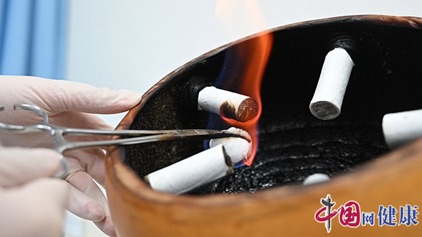 葫芦具有密闭性和容纳性两个特点,内置点燃的艾卷与之完美结合,温度恒定,施灸面积大,舒适度高。该疗法遵循“无烟不为灸”理念,避免了艾灰、艾烟的困扰,患者只闻艾香,少见灸烟。