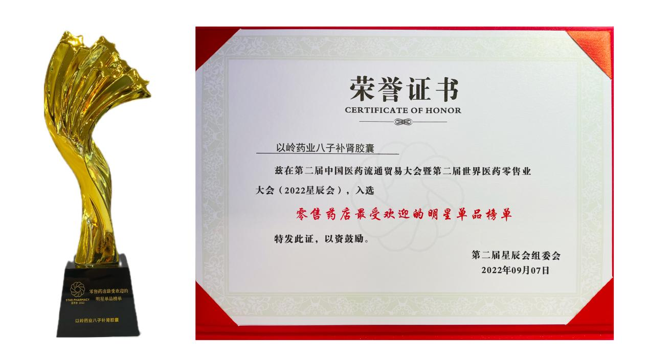9月8日,第二届中国医药流通贸易大会暨第二届世界医药零售业大会(简称“2022星辰会”)在长沙启幕,来自全国的医药行业专家学者、行业领袖共同探讨医药行业发展的新思维、新技术、新模式,寻求全方位、宽领域的合作共赢。以岭药业研发生产的补肾抗衰专利中药八子补肾胶囊,入选2022星辰会零售药店“最受欢迎明星单品榜单”。