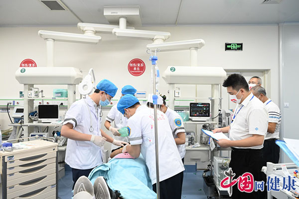 随后专家组进行了分组评审验收,并随机抽取一例模拟严重多发性创伤病例进行现场演练,全程观察医院救治团队从院前到院内、MDT会诊、辅助检查、急诊手术准备等流程操作。通过演练检验医院严重创伤患者救治能力、流程、团队协作、技术规范程度和救治效率。