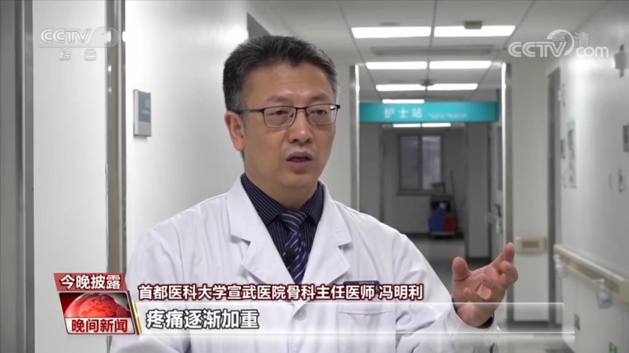 首都医科大学宣武医院骨科主任医师冯明利:早期疼痛的时候比较轻微,随着病情的加重,疼痛逐渐加重。如果到了中期或者晚期的时候,疼痛明显加重。还有功能障碍,走路腿脚不好用了,最后活动明显受限,劳动的丧失。