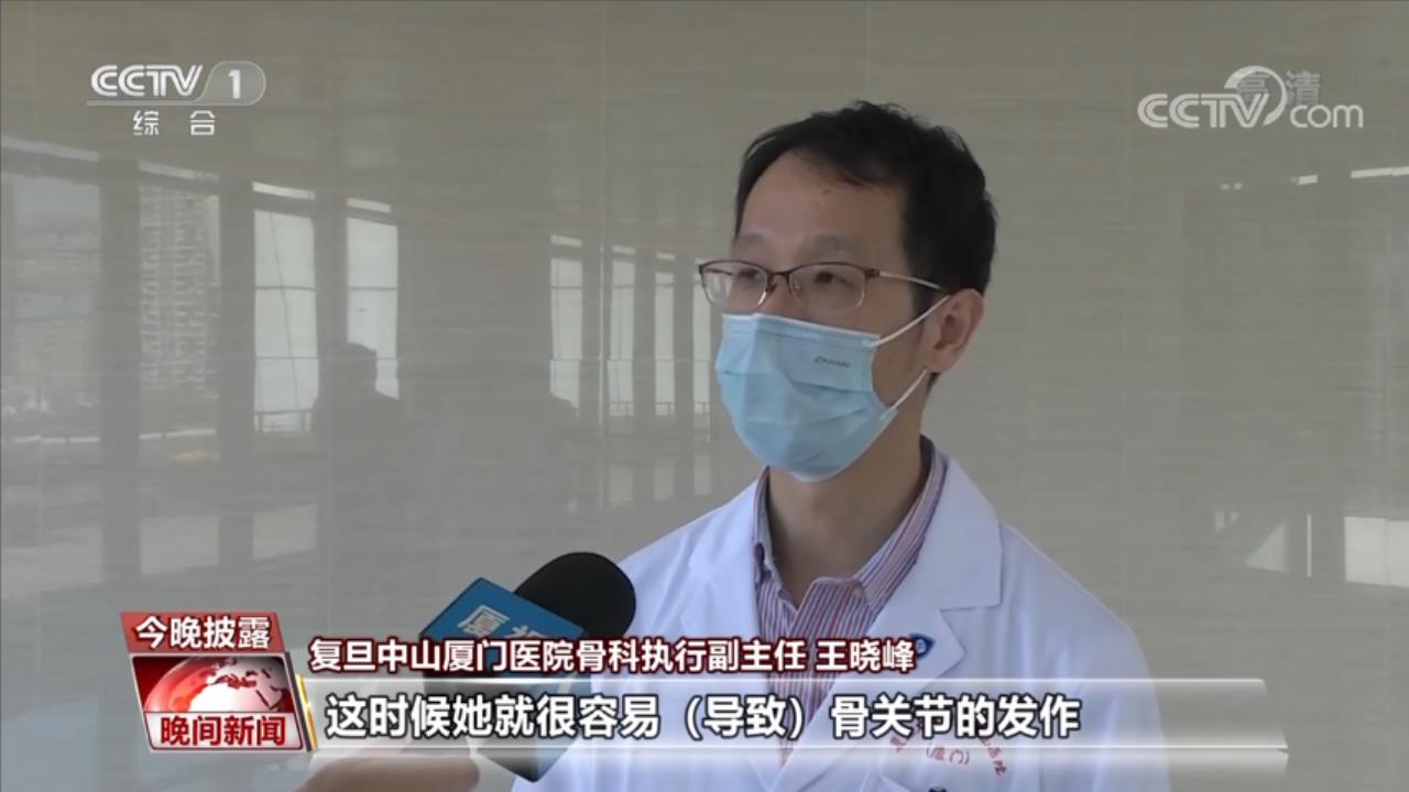 复旦中山厦门医院骨科执行副主任王晓峰:很多女性年轻的时候不锻炼,年纪一大,体重加上去了,上面肥胖,下面两条腿很细,活动量又增大了,这时候就很容易(导致)骨关节的发作。