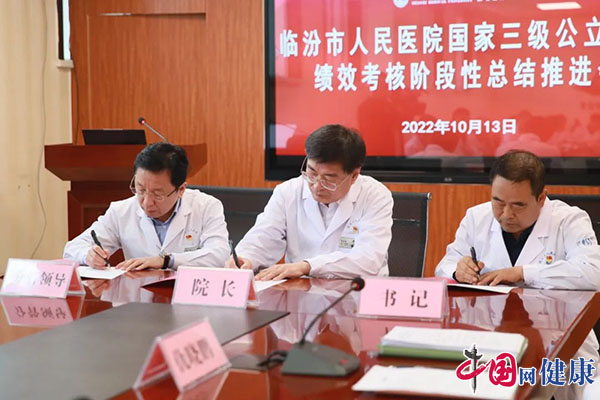 10月13日,临汾市人民医院召开国家三级公立医院绩效考核阶段性总结推进会,院党政班子成员出席会议,相关职能科室主任参会。