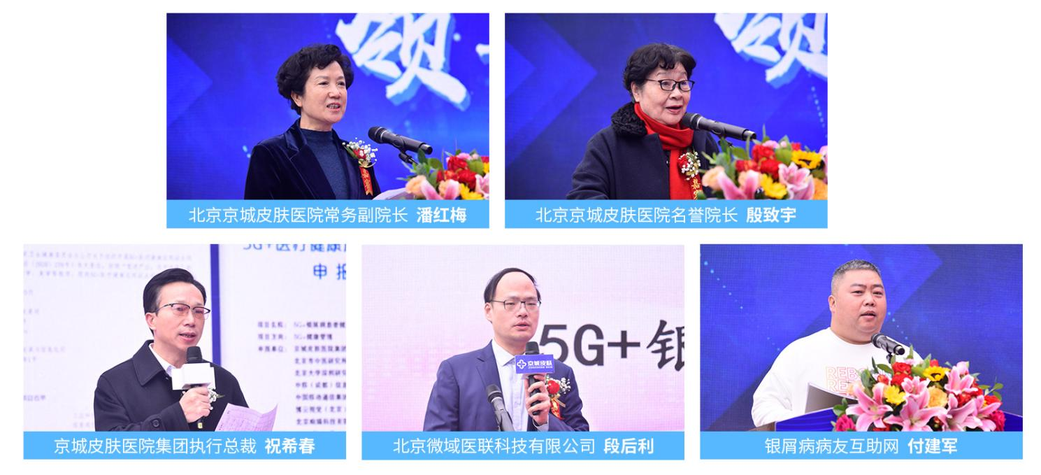 国家中医药管理局监测统计中心首席研究员李宗友、工信部中国信通院云大所智慧健康管理部副主任冯天宜、北京市经济和信息化局相关领导,空军总医院皮肤病医院原院长刘玮教授、北京大学第一医院皮肤科原主任马圣清教授、北京安贞医院皮肤科原主任殷致宇教授、北京同仁医院皮肤科原主任庄逢康教授、北京大学人民医院张文娟教授、北京中医医院主任医师姜燕生、中日友好医院主任医师宋佩华、北京安贞医院副主任医师狄梅、解放军总医院副主任医师周澜华等十几位皮肤科专家,项目共建单位北京市中医研究所常务副所长李萍、中国移动通信北京公司城区一分公司副总经理王琦辉、北京响臻科技有限公司CEO钱序、北京微域医联科技有限公司总经理段后利博士,银屑病病友互助网创始人之一付建军等悉数到场。京城皮肤医院集团旗下的河南京城皮肤中医院、徐州京城皮肤病医院、唐山京城皮肤医院三家分院通过远程会议参与了活动。