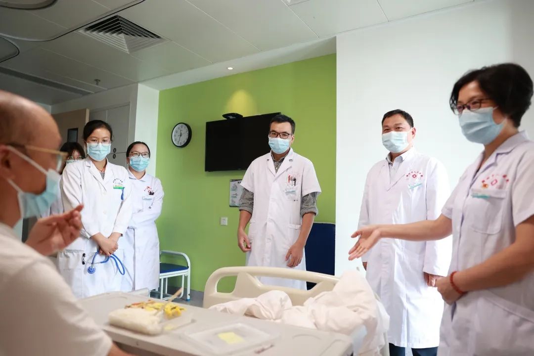 在查房时,两位主任偶然发现一个熟悉的面孔。患者陈先生很久以前就在集团总院进行治疗,并且需要定期住院,总院的专家们对他来说就是老朋友、老熟人。后来因为离家远,陈先生从前几年开始就来到了潭中院区进行住院治疗,这样更方便。