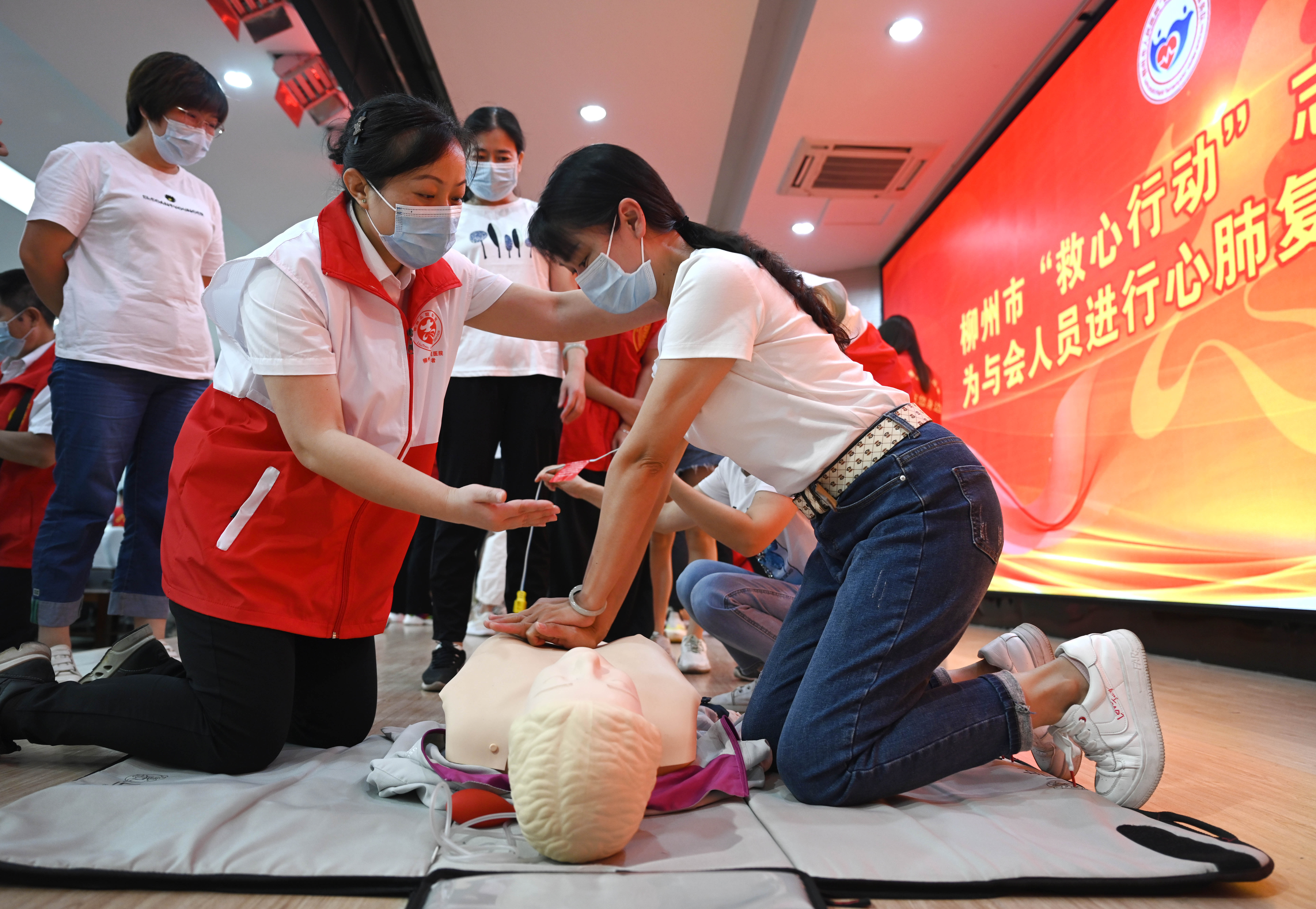 邵宣霖和潘璇既是柳州市人民医院医务工作者,也是市人民医院志愿者服务队队员,经常利用业余时间参加柳州市“救心行动”培训,有着熟练的心肺复苏经验。抵达现场后,他们发现老人呼叫不应、失去意识、颈动脉搏动和呼吸均消失,两人意识到,患者需要立即进行心肺复苏。