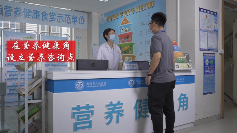 柳州市人民医院积极落实制度建设、设施建设、环境建设;按要求规范带量食谱、厨余标识、色标管理、厨具安排、厨卫消毒、送餐路线;开设“营养健康角”,让“三减三健”落地,公示每周盐、糖、油用量,及时改进;开设治疗膳食专窗、定期组织学习、培训,录制视频、音频,多种方式开展宣传。