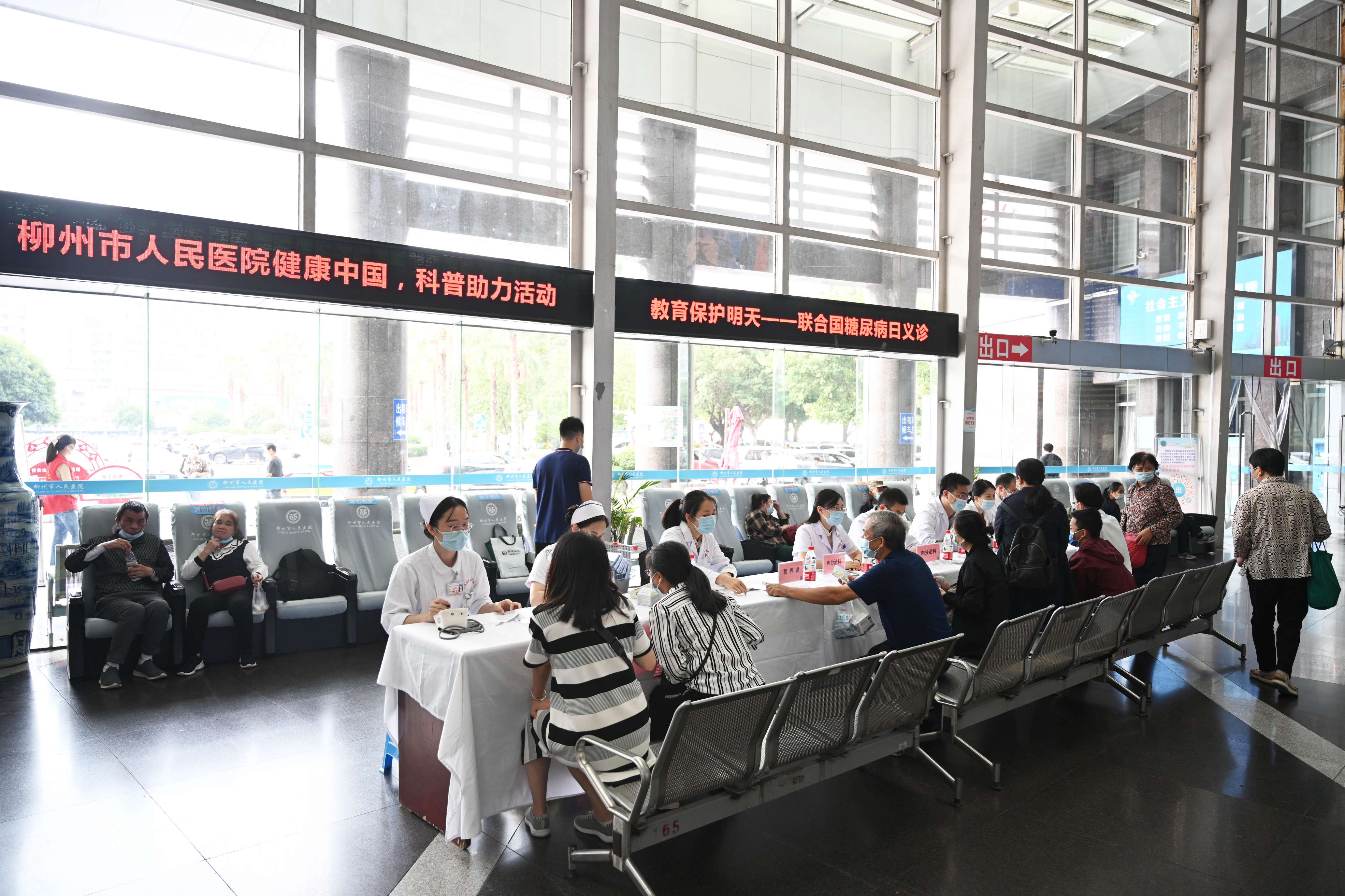 世界卫生组织及国际糖尿病联盟将每年11月14日定为联合国糖尿病日。为响应世界卫生组织及国际糖尿病联盟号召,积极助力健康中国行动,关爱糖尿病患者,提高群众防控糖尿病意识,11月12日,柳州市人民医院内分泌科在医院门诊一楼大厅,联合临床营养科、心血管内科、神经内科、肾脏病内科、眼科等科室专家开展大型公益义诊活动:教育保护明天——我们在行动,为全球糖尿病防控贡献力量。
