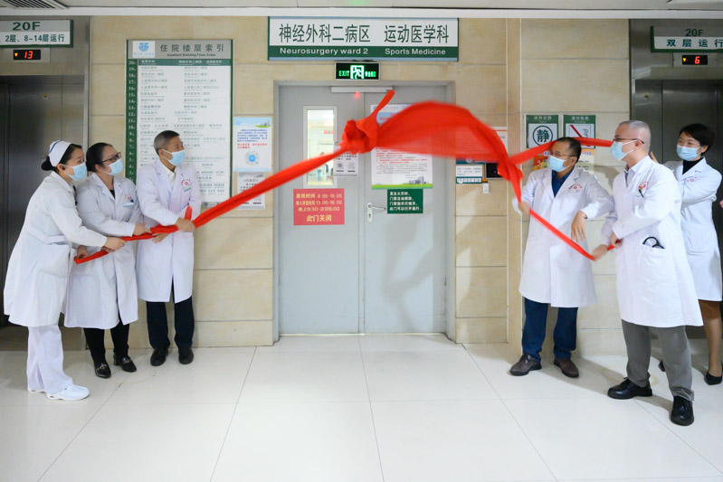 随后,与会各位领导为运动医学科病区进行了揭牌。