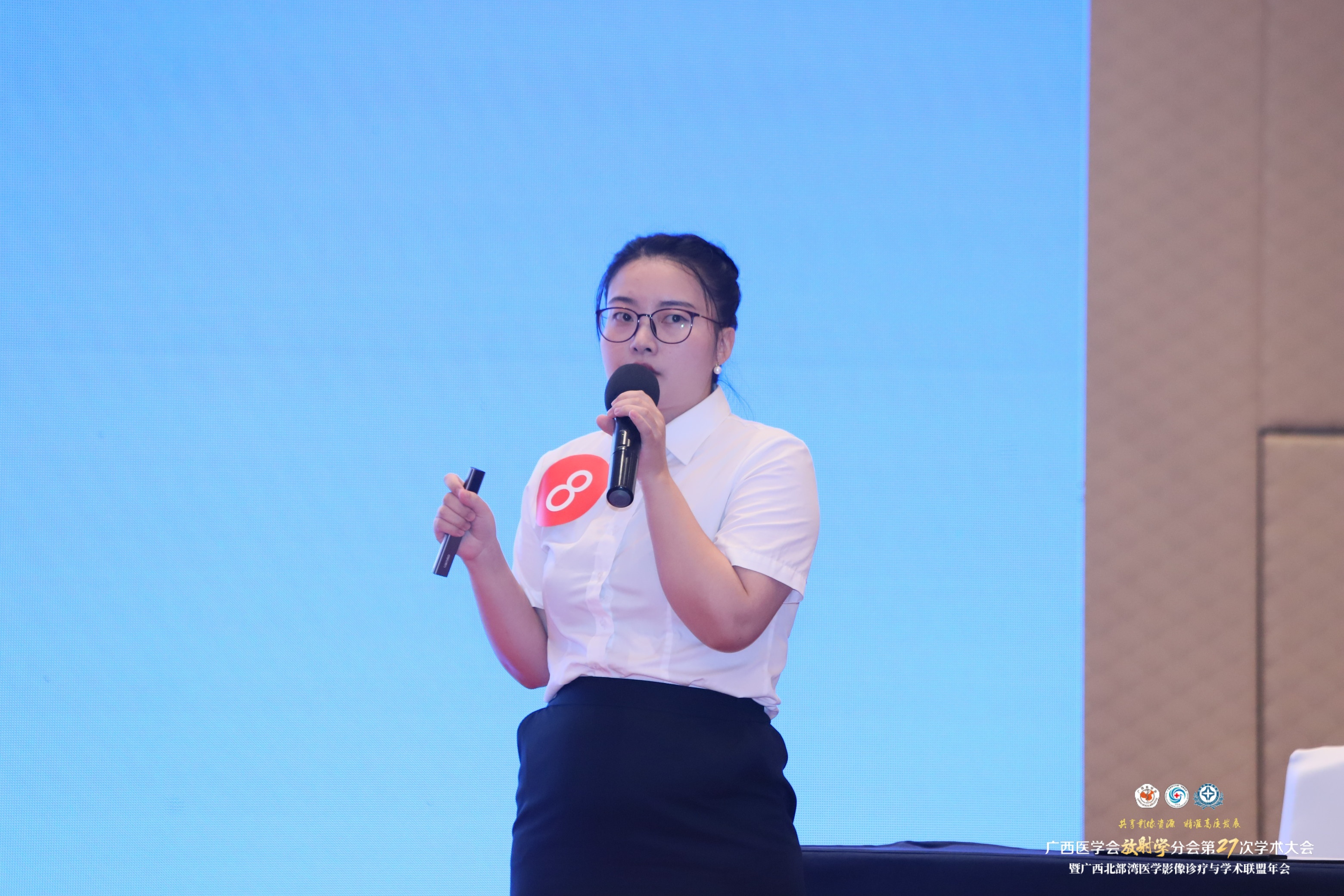 青年医师论文比赛经过形式审查、专家盲审等严格的审查程序,最终区内16名青年医师的论文进入到最后的论文演讲比赛环节。在决赛中,选手们同台竞技,切磋技艺,彰显风采,经过激烈的角逐,柳州市人民医院放射科医师盛静的《基于临床及CT影像特征的诺模图预测克罗恩病活动性的价值研究》荣获比赛二等奖。