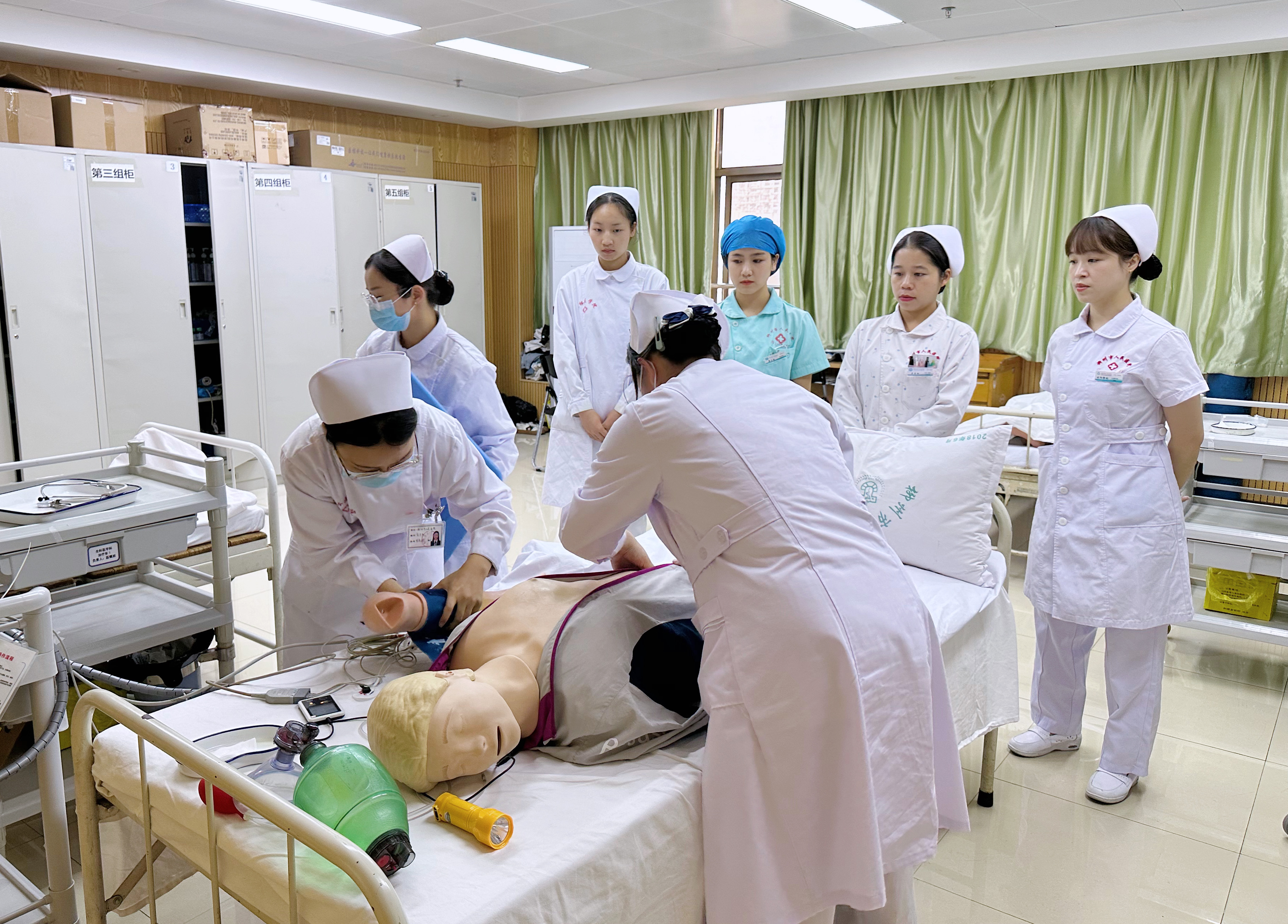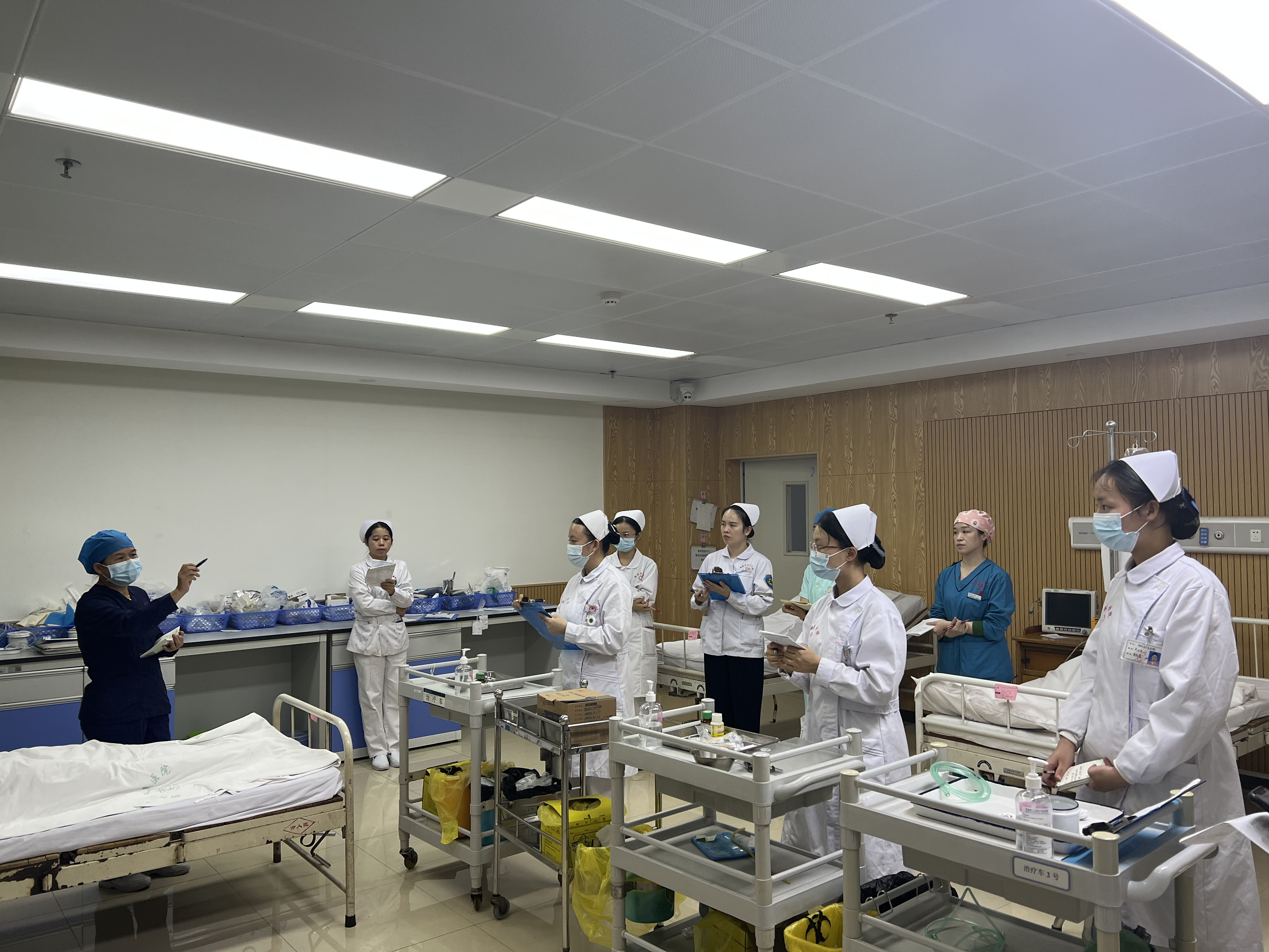本次比赛得到了医院的高度重视,护理部在分管院领导吴先球副院长的指导下,迅速制定培训方案,组建拥有丰富经验的指导老师团队。在教学过程中,采用全国大学生护理技能竞赛的模式进行指导,针对学生弱项,不断进行强化训练,不拘泥于单项的操作培训,更注重运用各种案例启发和培养学生们的临床思维。选手们用短短10天时间,在实训室复习基础、内、外、妇、儿、急危重症等专科护理学知识,同时勤学苦练各项专科操作。
