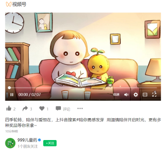 短片在各大平台同步上映后,为999小儿感冒药收割了一大波用户好感。与此同时,品牌方通过IP形象以及「陪伴成长」的品牌精神内涵的结合,在抖音平台打造了一次趣味互动贴纸挑战赛。