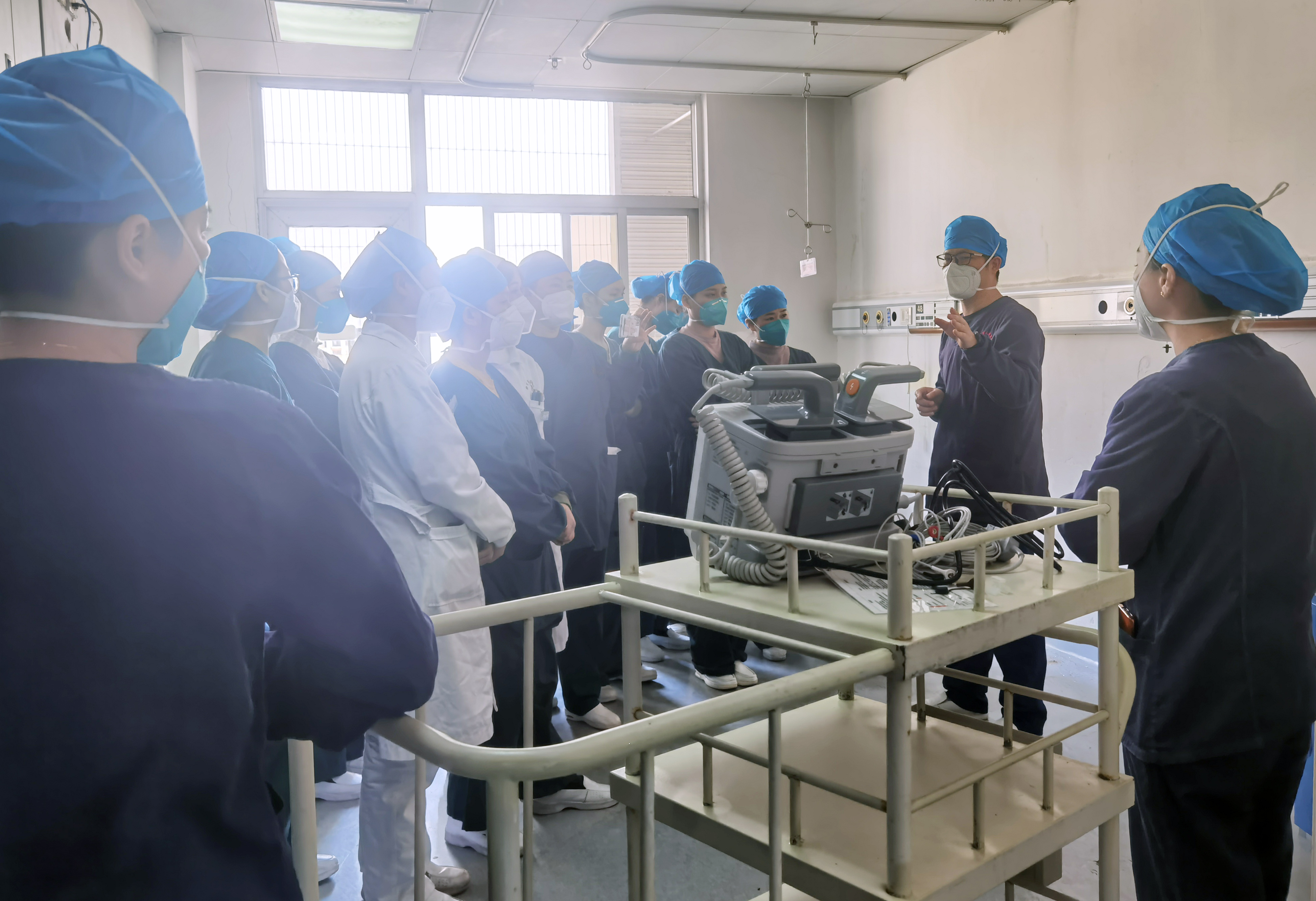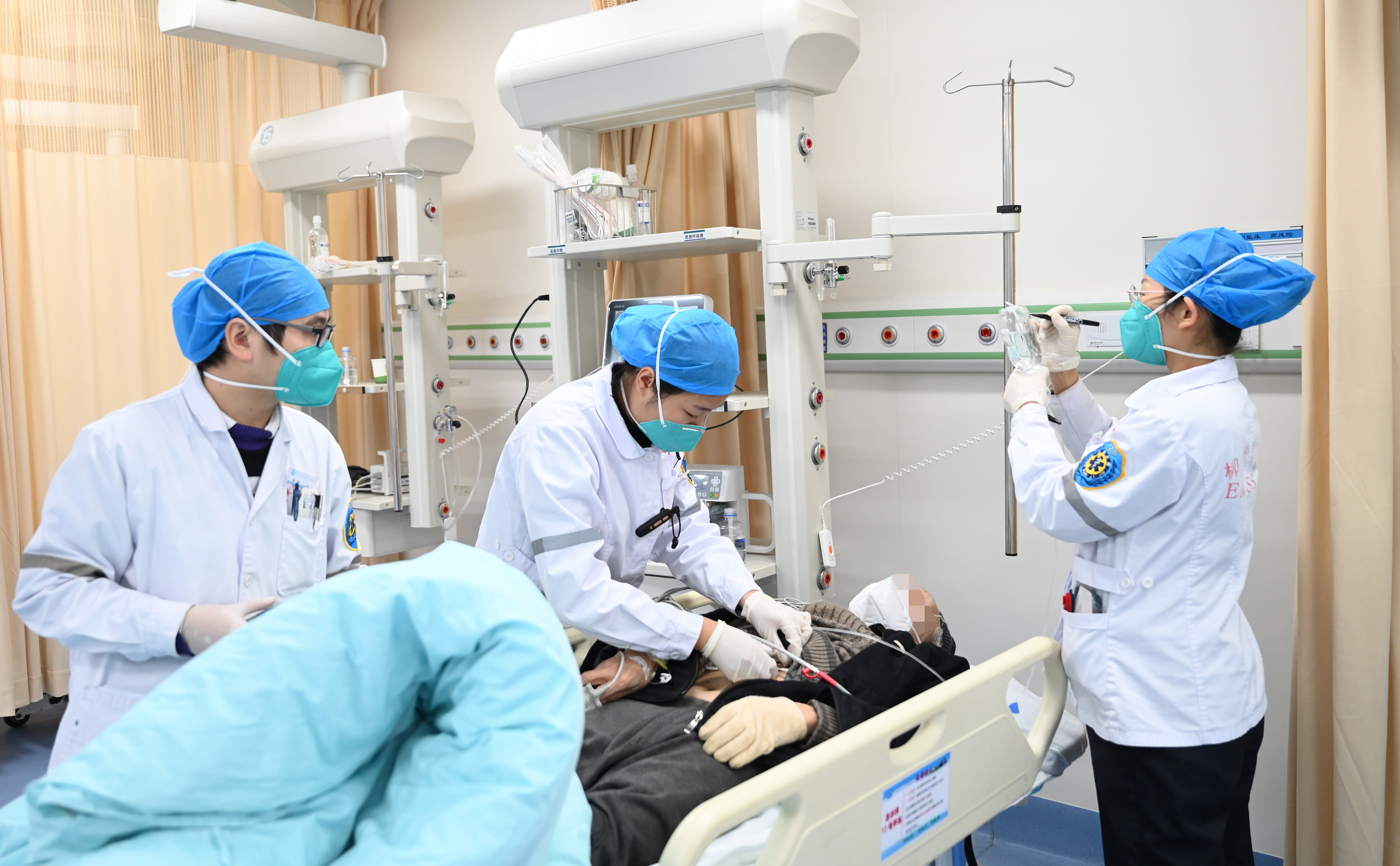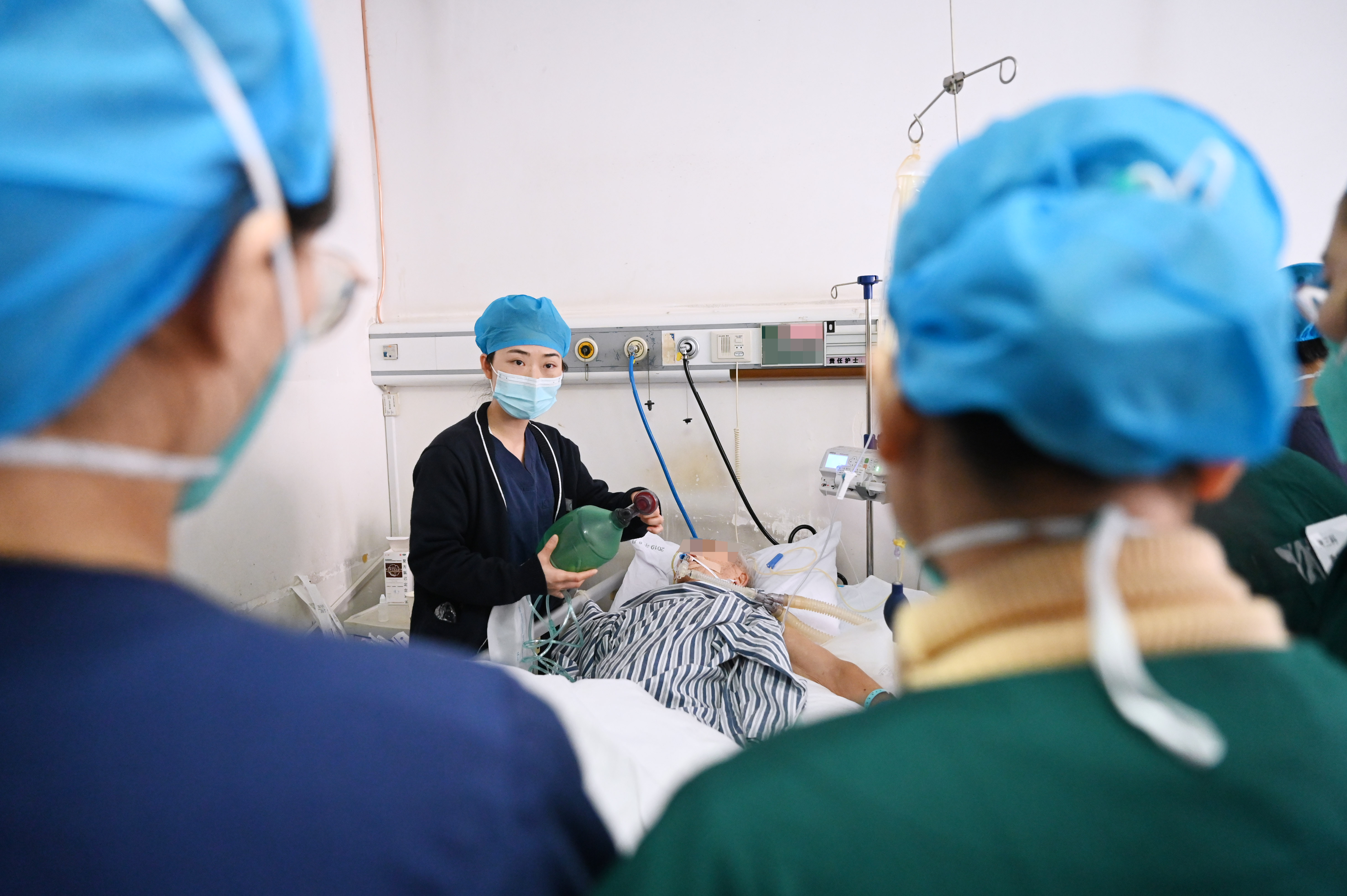 医护人员的脚步和语速飞快,不停穿梭于急诊病房与抢救室之间,护士们24小时关注着呼吸机、监护仪等设备的各种参数变化,随时汇报给医生。医生们通过听诊、心电图、超声等床旁设备始终不停地关注着患者病情,积极寻找病情变化的原因......