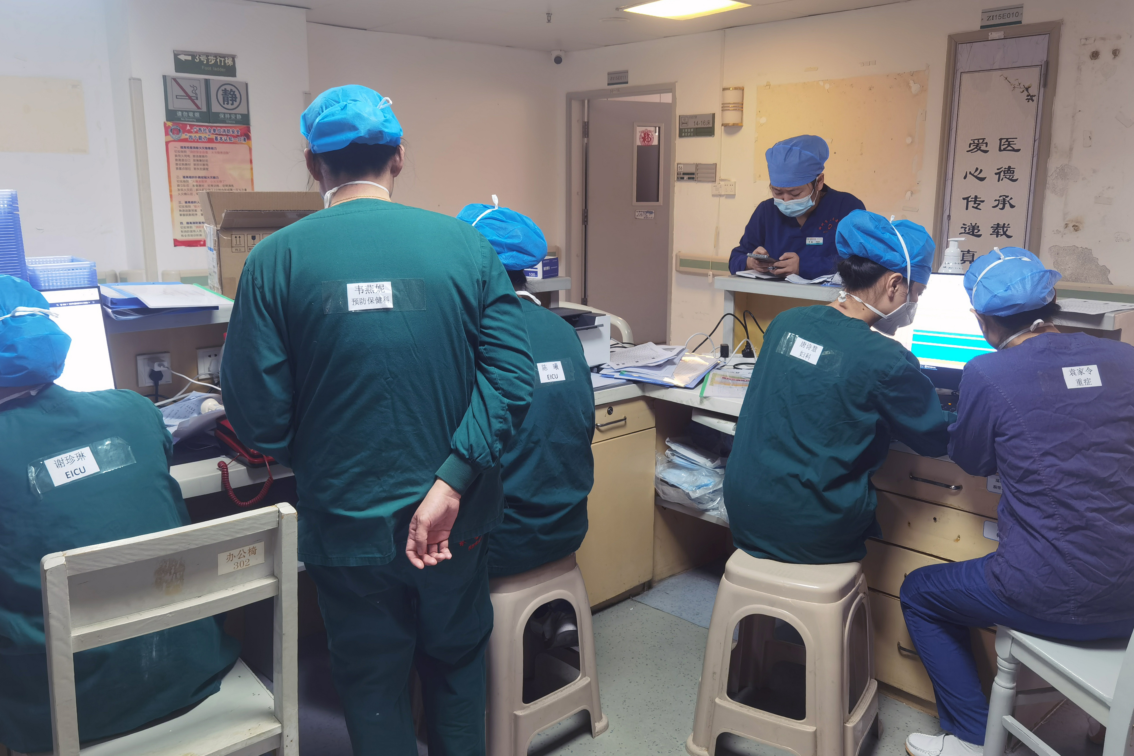 “快,15床患者血氧太低了!”、“8床患者血压下降,测不到了!”、“6床患者心脏停跳,立即心肺复苏!”……忙碌的重症医学科,消毒水散发着浓烈的气味,在这里的医护人员没有上班下班的概念,他们日夜不辞辛劳地工作着,困了就和衣而眠,随时随刻整装待命。