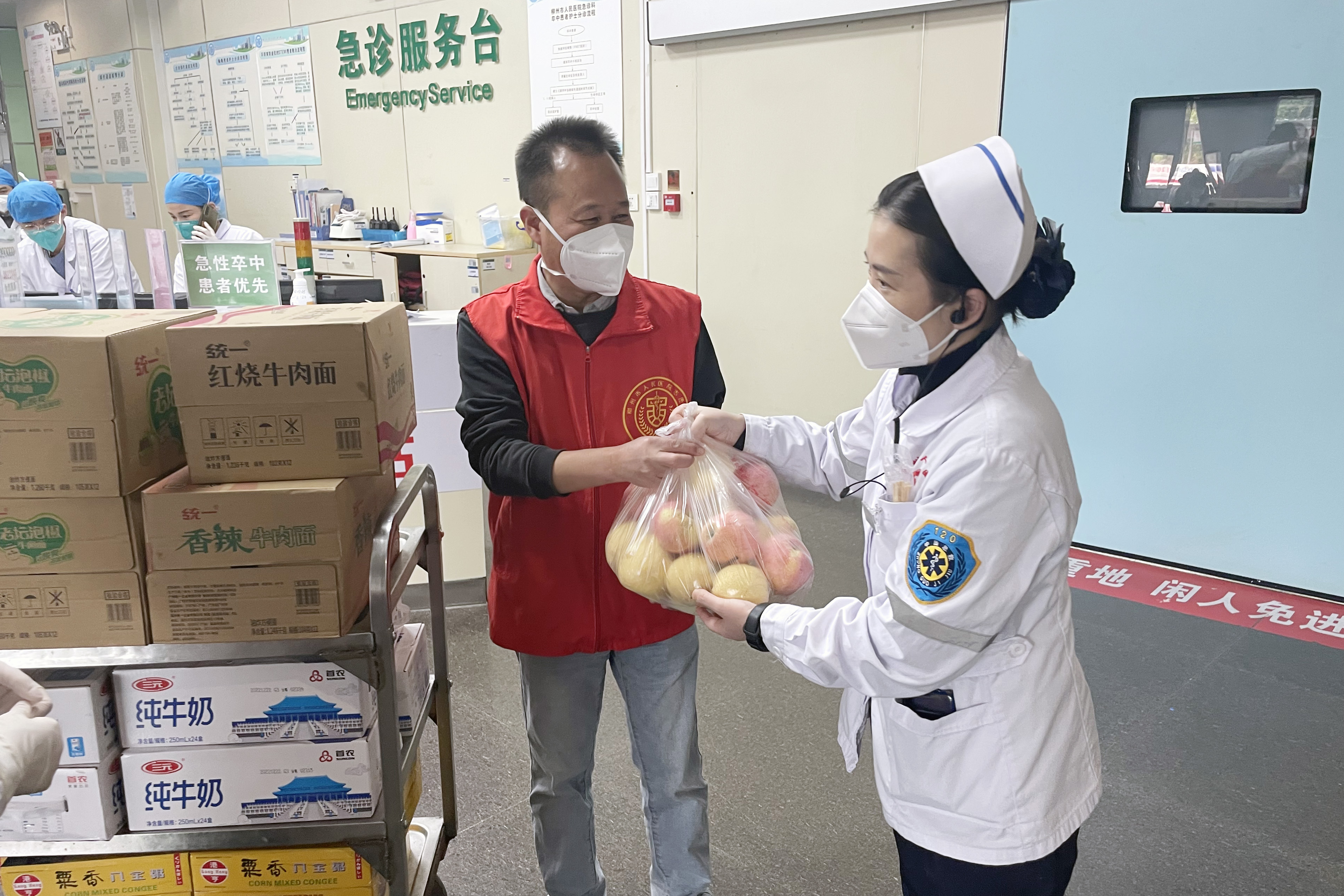 医疗救治争分夺秒,后勤保障同样是在与时间赛跑。柳州市人民医院成立后勤保障服务先锋队,持续不断地为一线“战士”准备“粮草”,做到后勤物资有保障,前方“战友”请放心。