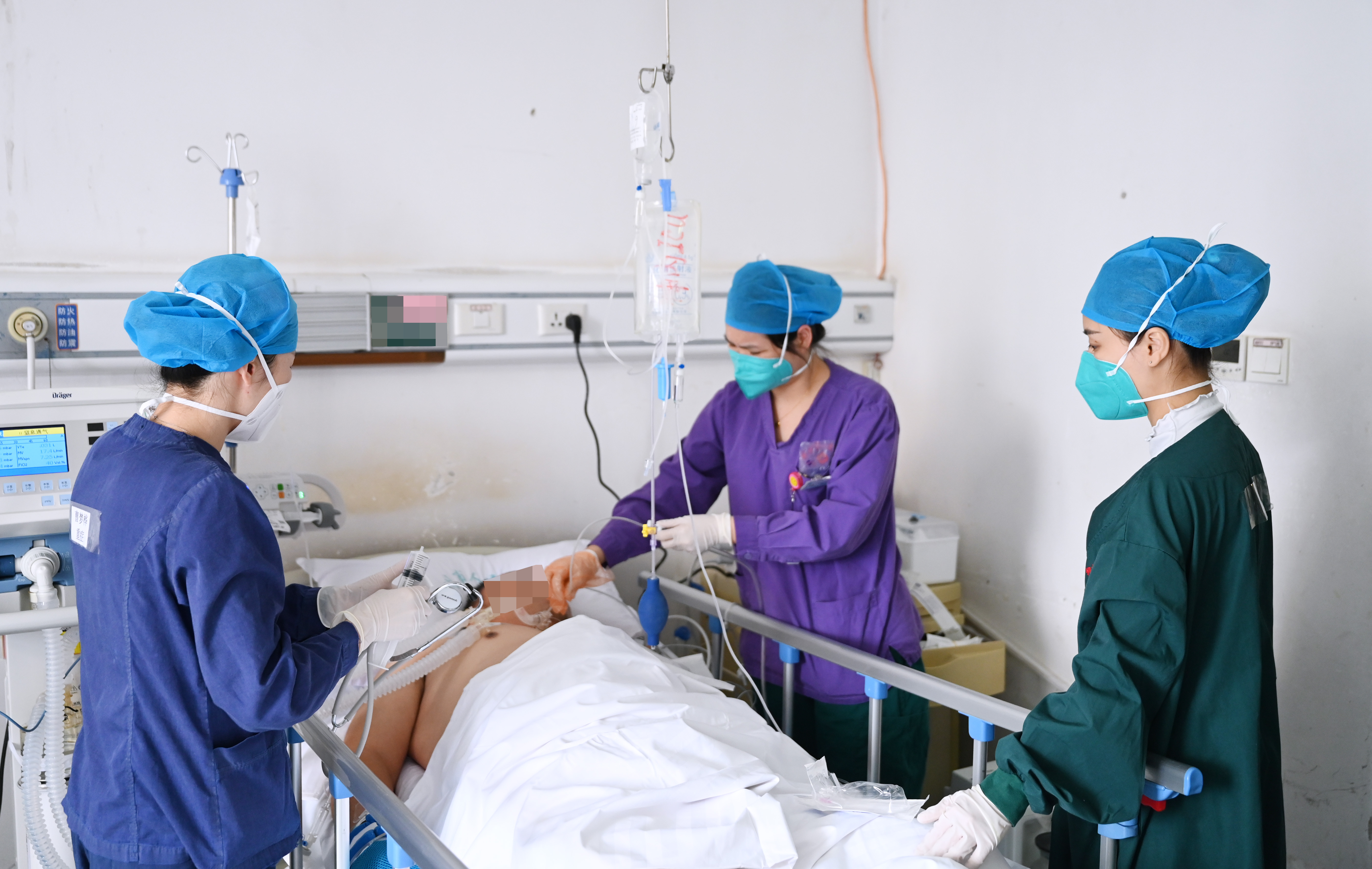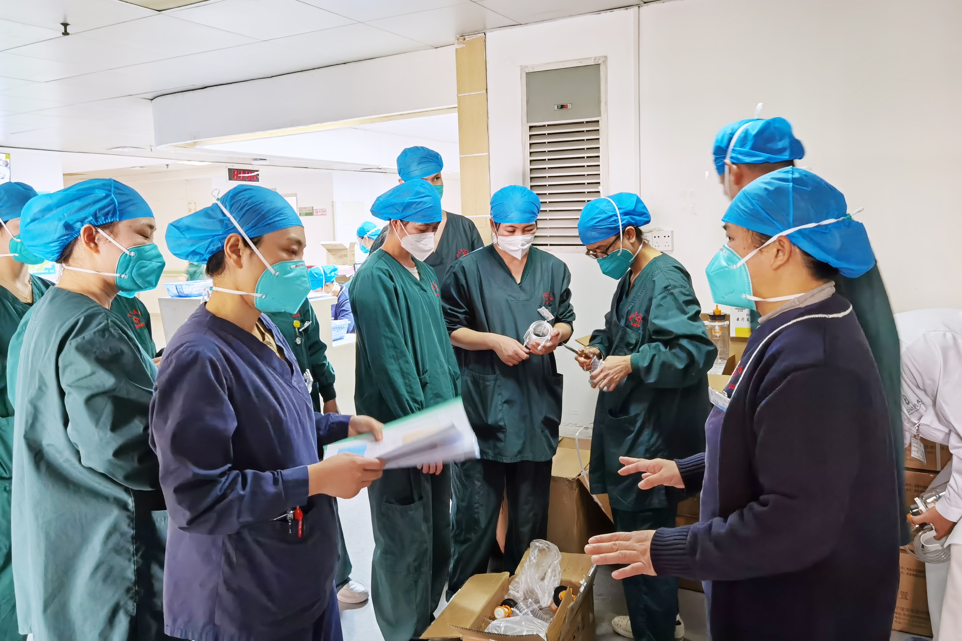 此前,重症医学科就已经持续超负荷运转,如今,科室内的患者数量更是与日俱增。虽然每天超负荷工作,但重症医学科的工作却井然有序地进行着,收治新患者、查房、全院会诊、气管插管、中心静脉穿刺、调整呼吸机参数。翻身、吸痰、动脉采血、CRRT、血液灌流、输血、物理降温、各种导管护理……大家耐心、细致、专注地做好每项工作,以确保重症患者的积极救治。
