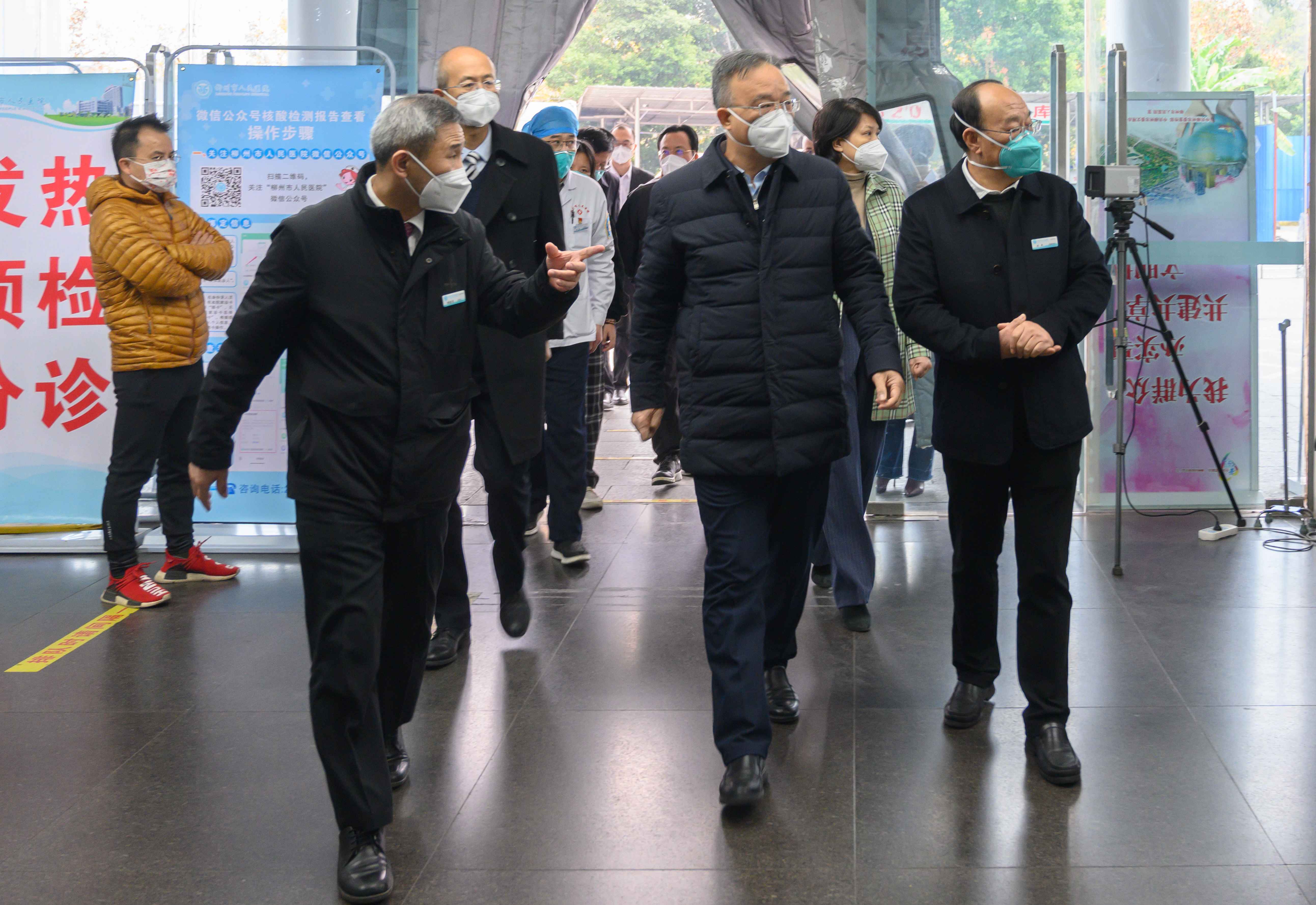 2022年12月27日,广西自治区副主席黄俊华率调研组到柳州市人民医院对疫情防控及救治工作进行调研,并慰问一线医务工作者。柳州市副市长卢柳屏,市卫健委主任林卫,市政府副秘书长谢永生,市人民医院党委书记刘兵、院长杨建青,副院长石展英、吴先球以及相关科室负责人随同调研。
