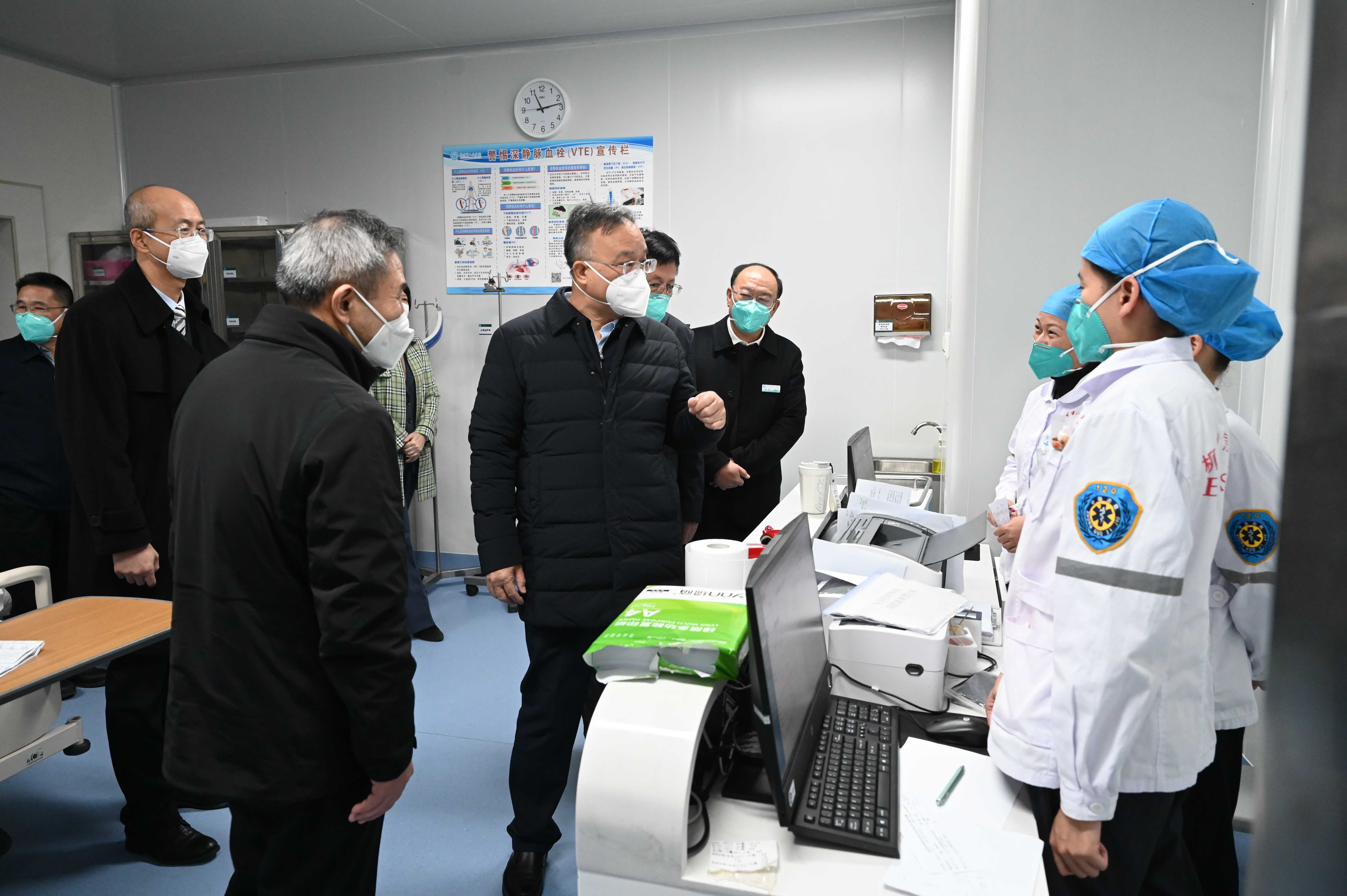 调研组一行实地查看了急诊医学科、急危重症救治室、急诊监护病房、重症医学科三病区、发热门诊等区域,详细询问了医院疫情防控及救治工作开展情况,看望慰问了奋战在一线的医务人员。