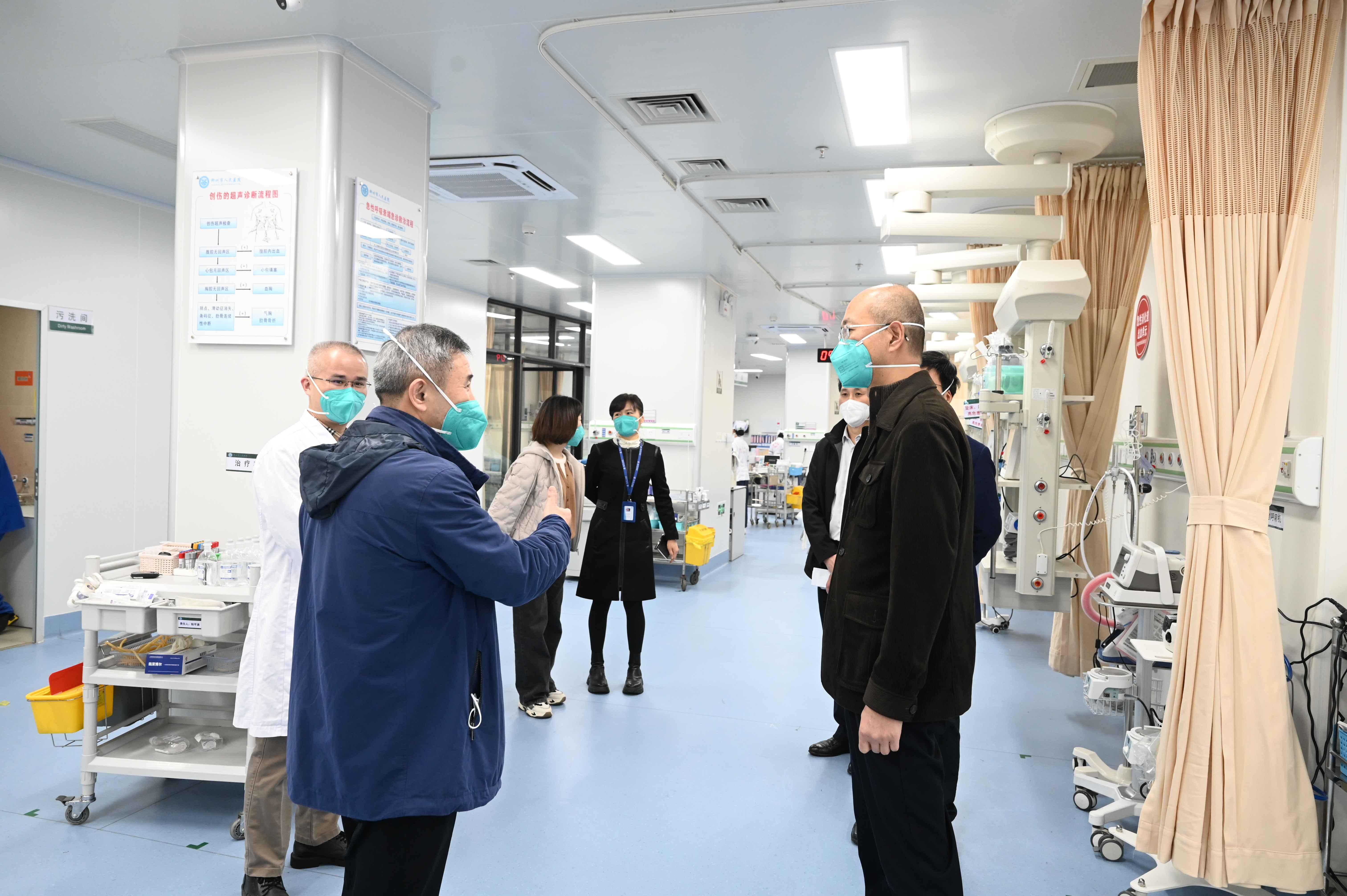 检查组一行分组实地走访了医院急诊医学科、急危重症救治室、急诊监护病房、重症医学科病区、呼吸重症监护病区等重点科室及区域,对医疗救治工作、消防安全管理、医疗设备安全管理等工作进行督导检查,并向奋战在一线的医务人员致以深切的关怀。