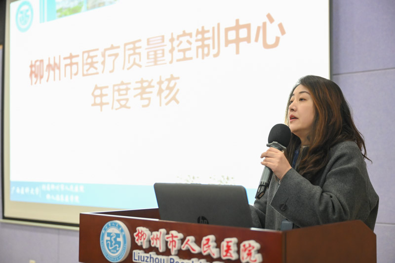 柳州市人民医院医务部部长刘媛从质控中心管理亮点、成效、工作规划与展望等方面向专家组汇报挂靠柳州市人民医院的23家质控中心2022年度工作情况。