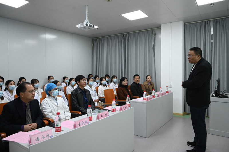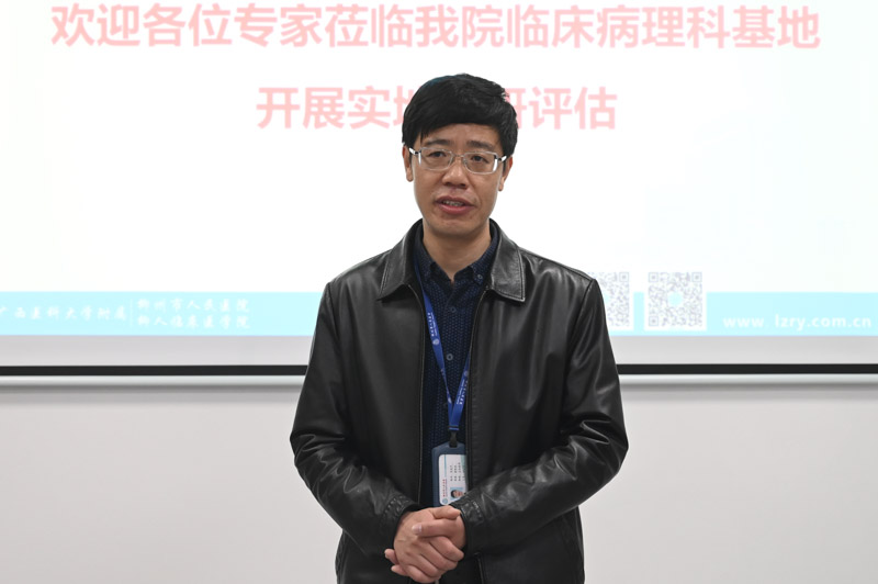 柳州市人民医院副院长肖运平对专家组的到来表示欢迎,感谢各位专家一直以来对柳州市人民医院临床病理科专业基地的关心与帮助。近年来,医院高度重视住院医师规范化培训各项工作的开展,临床病理科专业基地严格遵循住院医师规范化培训基地标准(2022年)和住院医师规范化培训内容与标准(2022年),以立德树人为根本任务,以六大核心胜任力为总体要求,分层递进、科学管理,全面提升住院医师的综合能力。