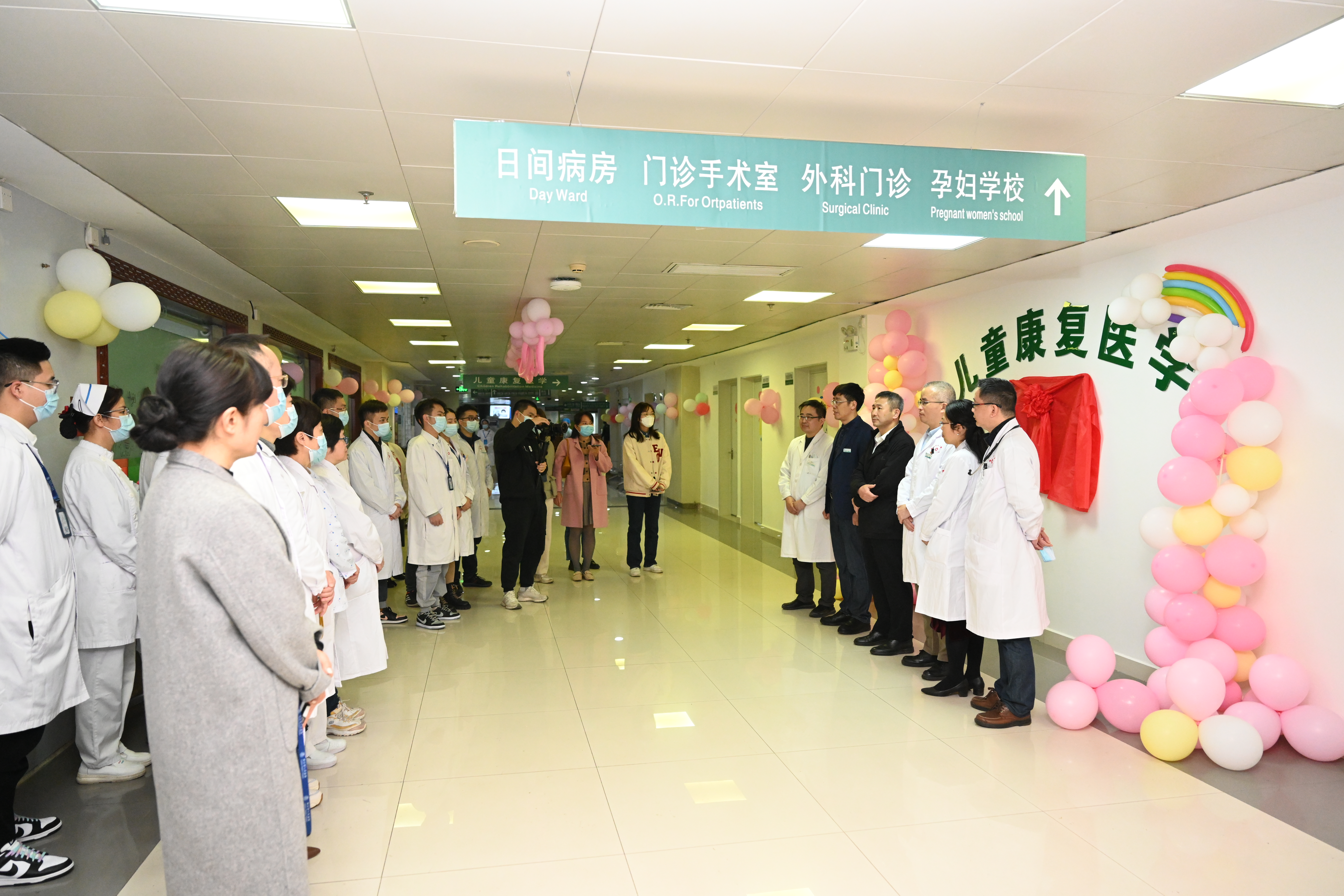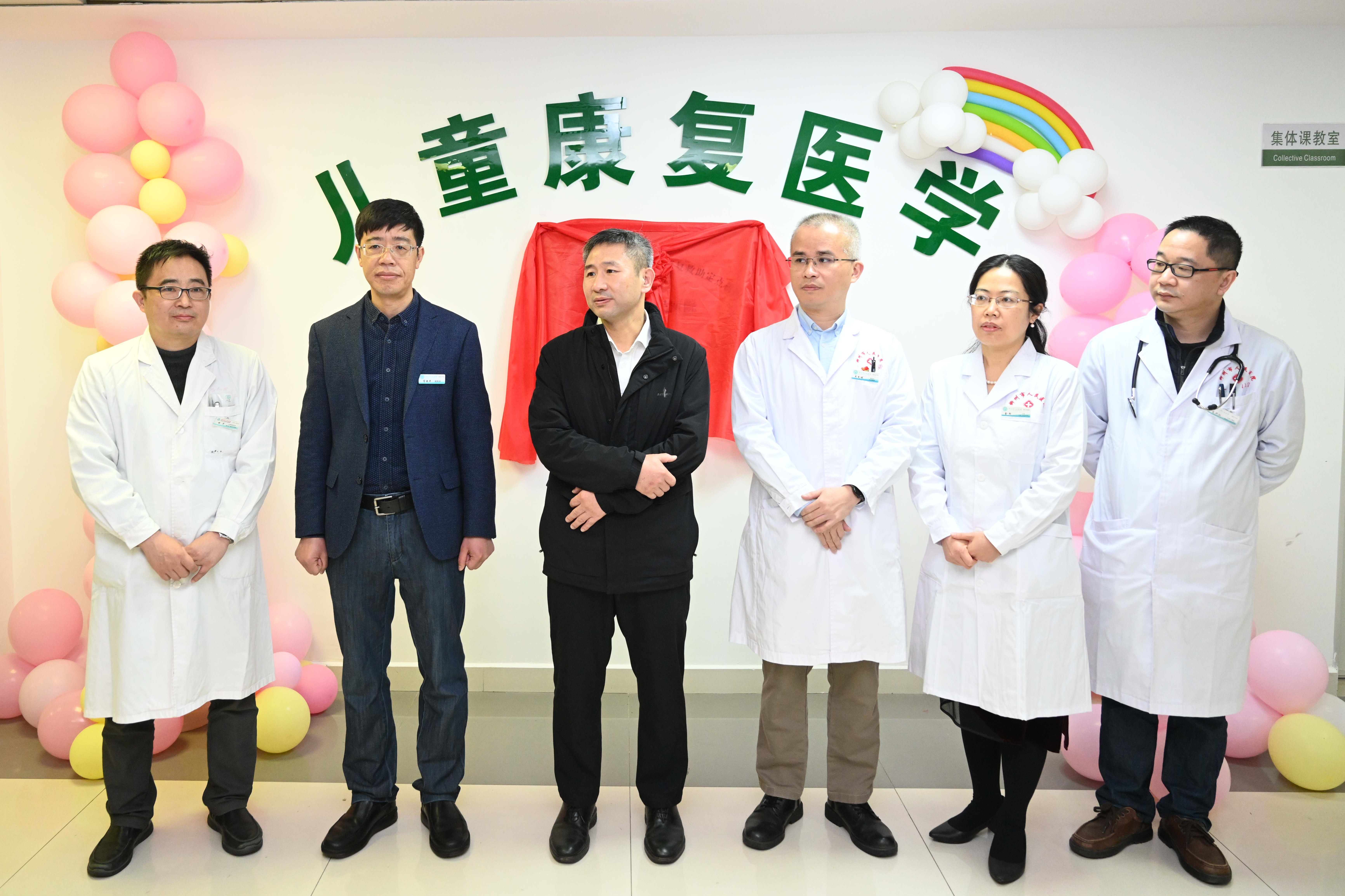 在热烈的掌声中,参加揭牌仪式的院领导及儿科、儿童康复科科室负责人共同为新搬迁的儿童康复科揭牌。
