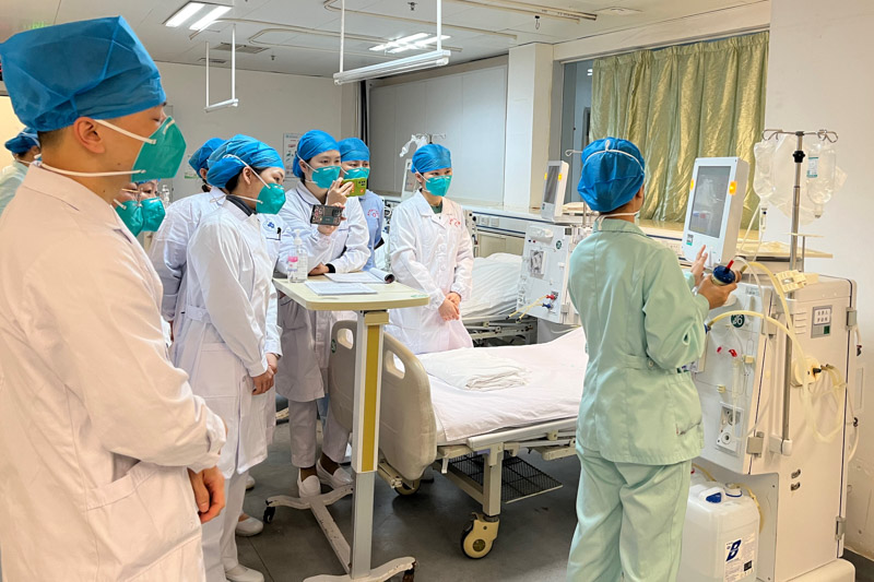 基地科室血透室根据专科护士临床实践培训大纲,结合医院专科护士培养要求,制定详细的教学方案,讲课内容涉及血液透析血管通路的管理、血液透析并发症的管理、血液净化枸橼酸抗凝的护理、血液净化设备管理、水处理。系统的维护、血液净化医院感染防控、重症血液净化护理管理、血液净化护理质量指标管理及专科护士教学及科研能力培养。