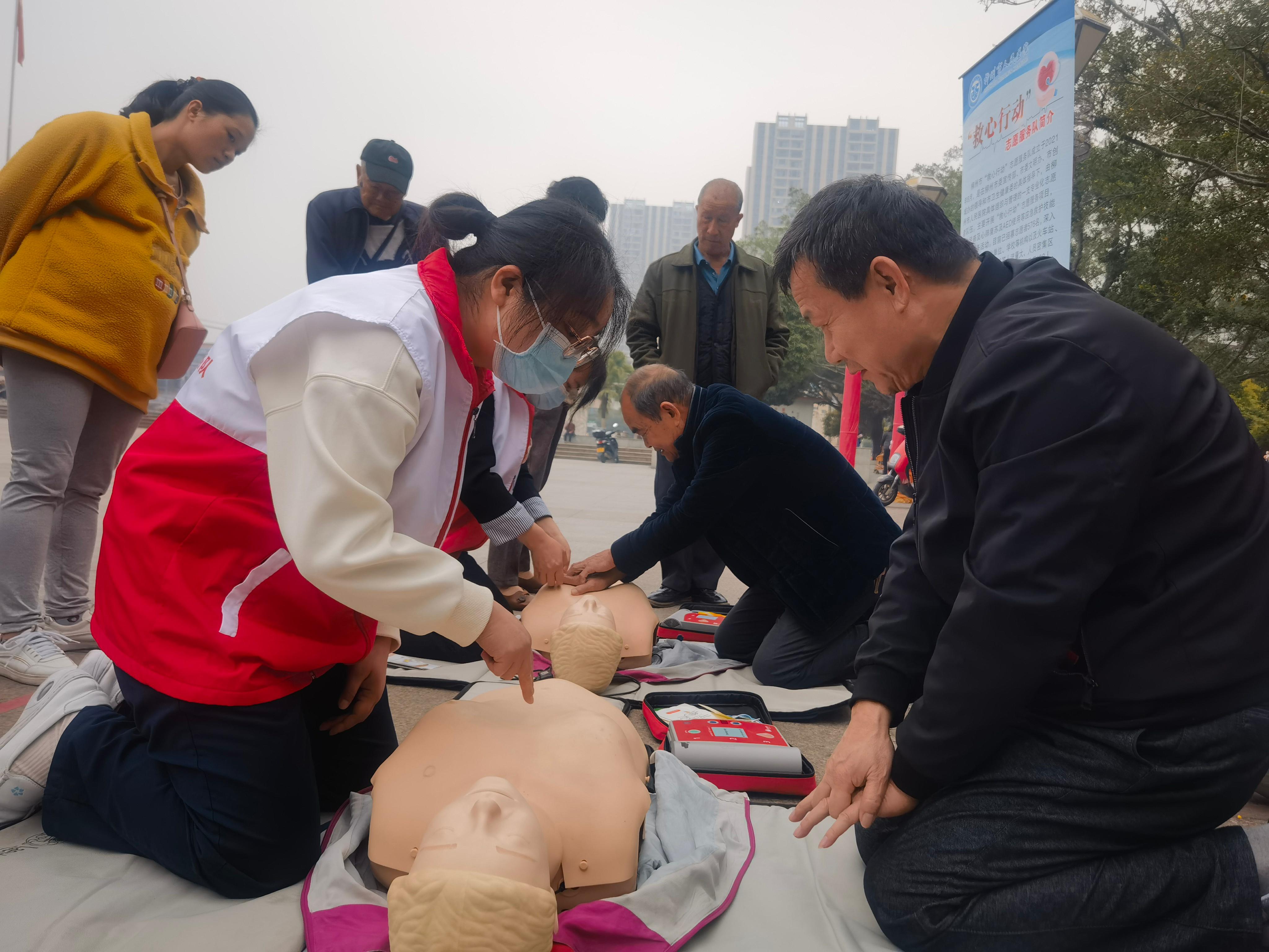 3月7日,柳州市人民医院“救心行动”志愿服务队与中西医院区青年志愿服务队前往柳城县白阳广场开展“救心行动”和健康义诊活动。活动现场反响热烈,惠及群众300余人,同期前往柳城县人民医院,与医院的工作人员深入探讨心肺复苏术及AED的操作细节,培训医务人员150余人。
