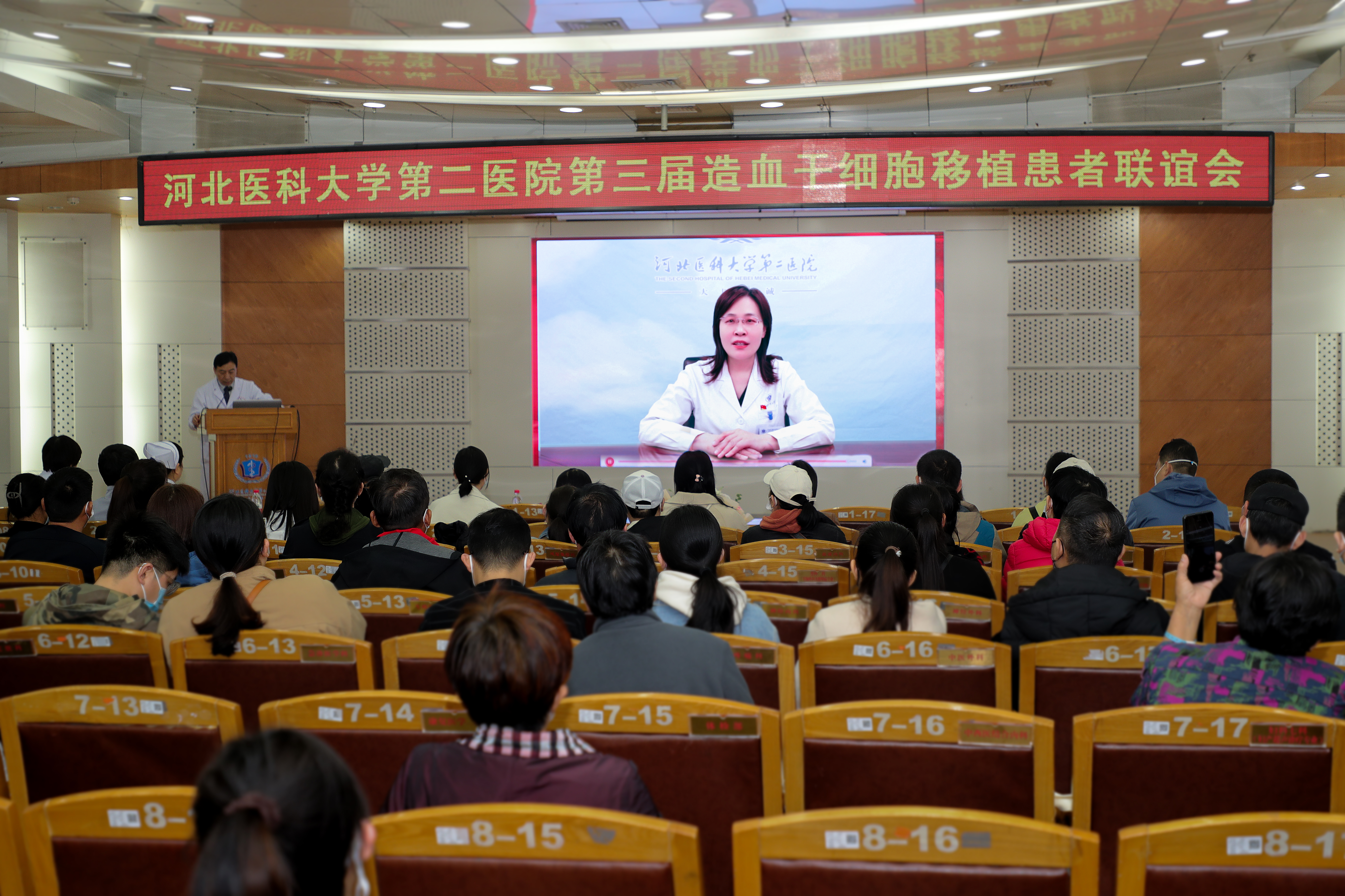 4月21日上午,在感恩与祝福声中,河北医科大学第二医院第三届造血干细胞移植患者联谊会拉开帷幕。来自省内的100余名移植患者在家属的陪伴下,回到这个让他们生命得以重生的地方,他们当中有的是19年前来到这里,有的是上星期刚刚走出“移植仓”,他们是一群与命运抗争的血液病患者,如今,他们再次相聚在一起,与血液科医护人员一起,畅谈心路历程,共话美好明天。