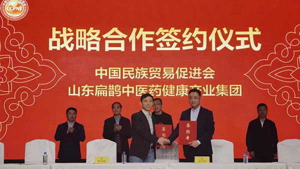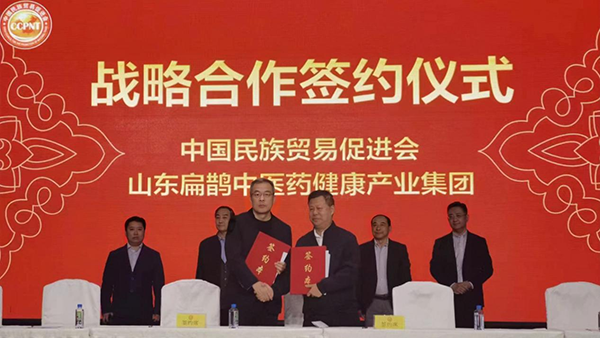 图为中国民贸与山东扁鹊中医医院签署合作协议