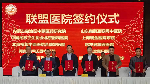 内蒙古民族大学附属医院党委书记康曙光、辽宁省蒙医医院院长吴晓英等协作医院代表,以及内蒙古自治区中蒙医药研究院院长斯琴巴特尔、中国民族卫生协会北京融科医院院长张育铭、山东扁鹊中医药健康产业集团副总裁王义华等联盟医院代表与中国民贸签署了合作协议,首批共计12家医院成为中国民贸“民族团结专科联盟”的成员单位。