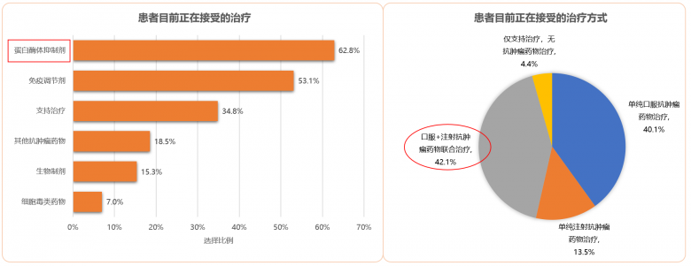 图6 MM患者目前接受治疗和正在接受治疗方式选择比例
