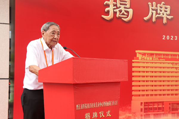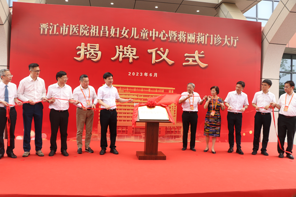 祖昌妇女儿童中心揭牌仪式之后,举行了蒋丽莉门诊大厅揭牌仪式,晋江市医院(上海六院福建医院)主要负责人向陈祖昌伉俪、晋江市及莅临现场的领导、嘉宾等介绍了祖昌妇女儿童中心和蒋丽莉门诊大厅的相关建设、服务妇女儿童等方面的情况。
