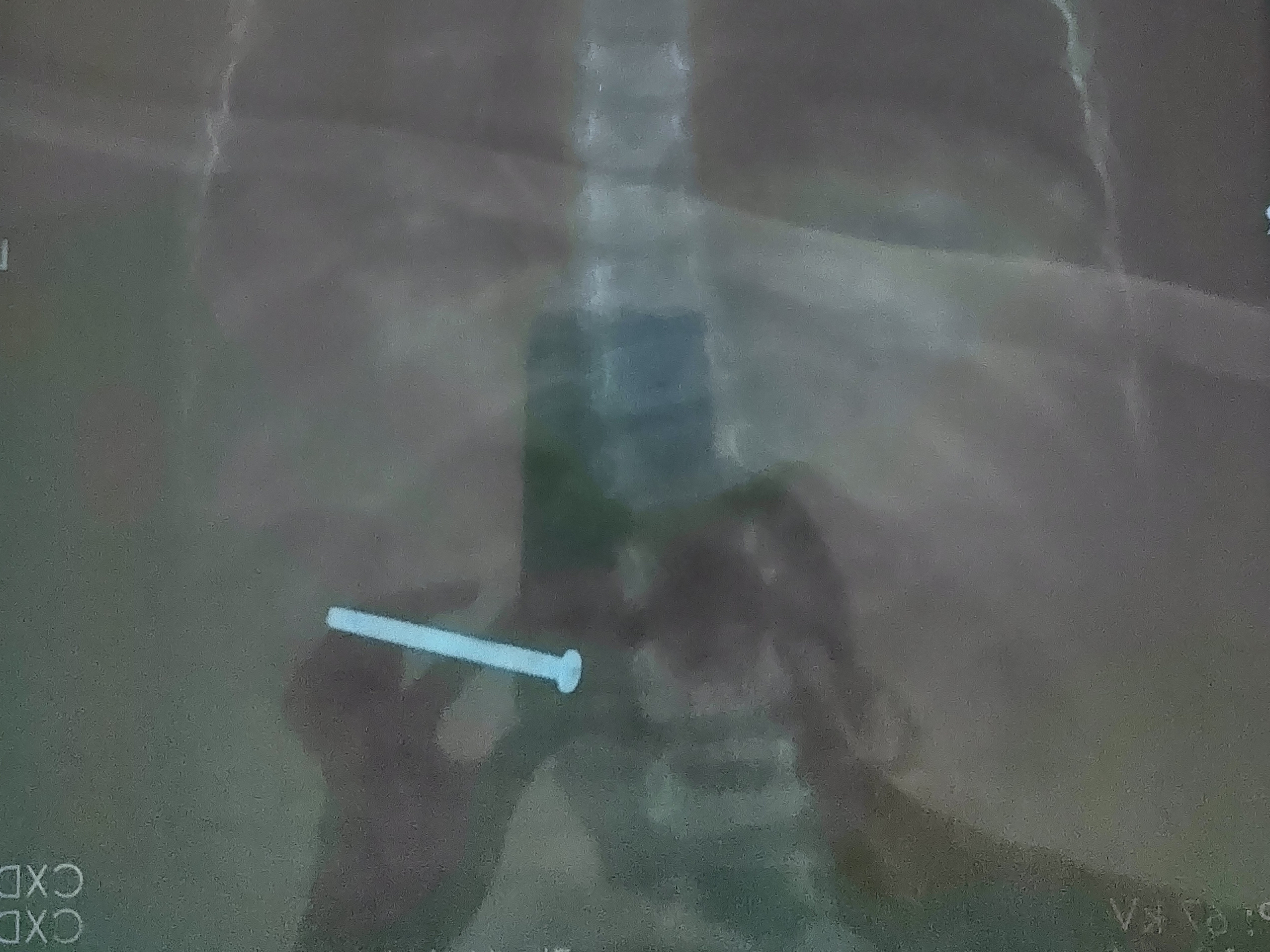 这名两岁幼儿在家玩耍长度超过4厘米的螺丝钉,出于该年龄段的天性,习惯性将螺丝钉放入口中,当家长发现不对劲时,螺丝钉已被幼儿吞入腹内。