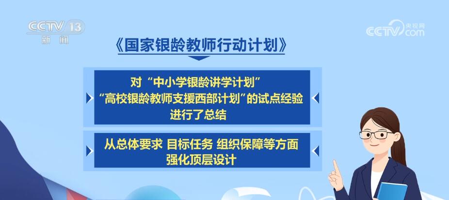 《国家银龄教师行动计划》对“中小学银龄讲学计划”“高校银龄教师支援西部计划”的试点经验进行了总结,从总体要求、目标任务、组织保障等方面强化顶层设计。