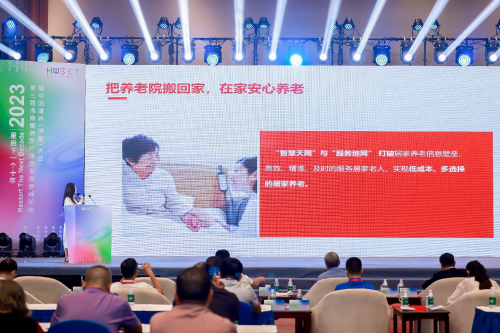 智慧养老领域的参与者、实践者和推动者李世莹女士现场主题演讲《医养结合,以科技赋能智慧养老》,分享了科技赋能养老的案例和智能远程守护的医养联动居家康养模式,受到院士专家及行业人士的高度认可。