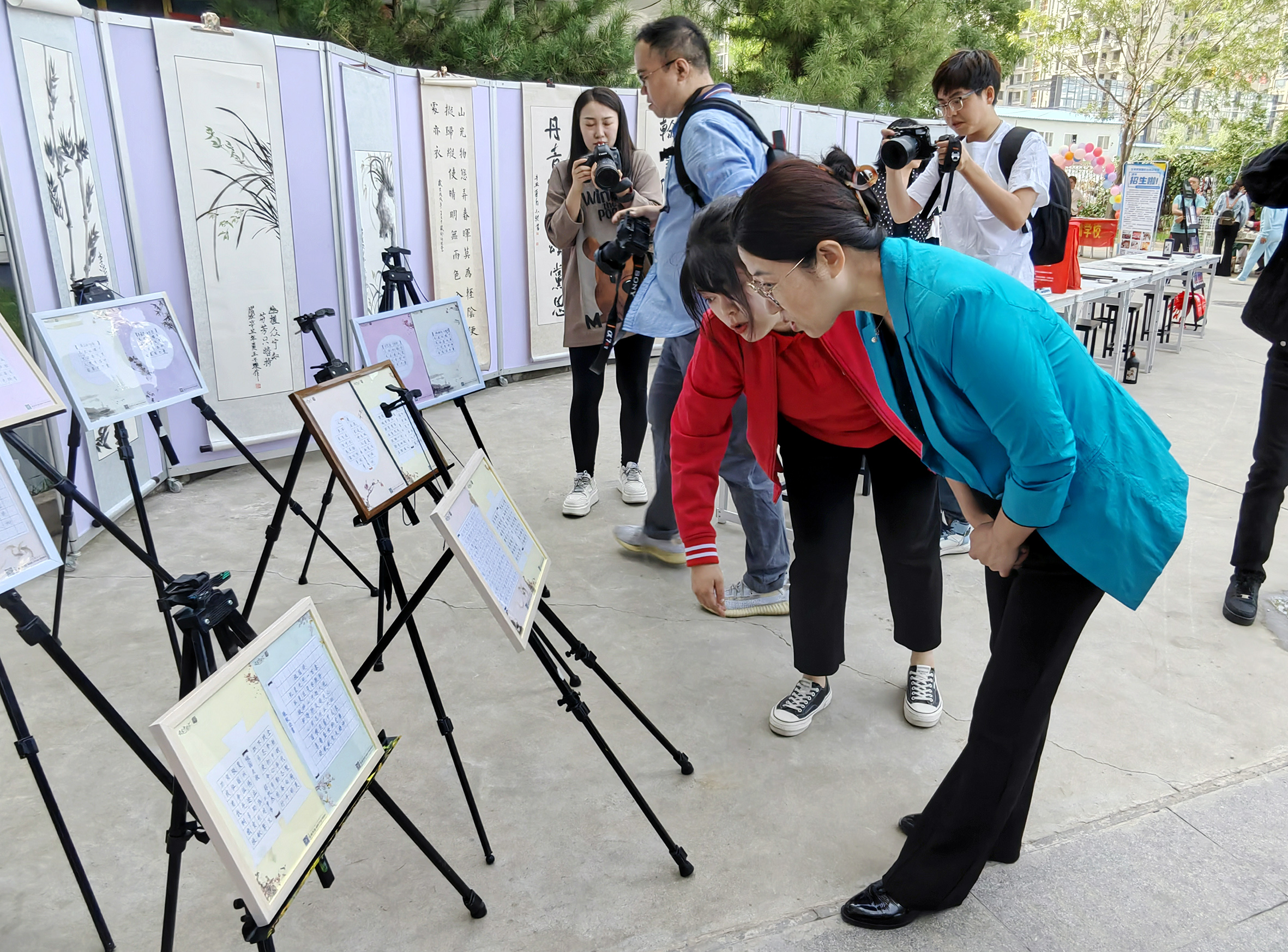 大家观摩体验了省妇女儿童服务中心书画、茶艺,扎染、编绳等非遗项目以及绘本剧表演、巧克力制作。或驻足欣赏,或亲身体验,孩子们饶有兴趣的向传统匠人学习技艺,居民们咨询了解家庭育儿知识以及中心的服务项目。